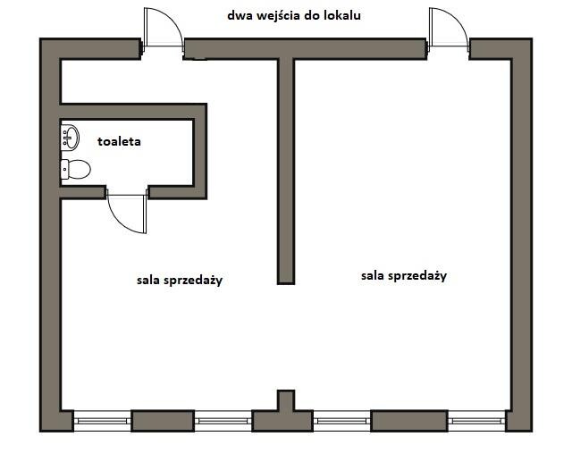 Lokal posiada dwa niezależne wejścia, co daje możliwość elastycznego podziału i prowadzenia różnorodnych działalności.