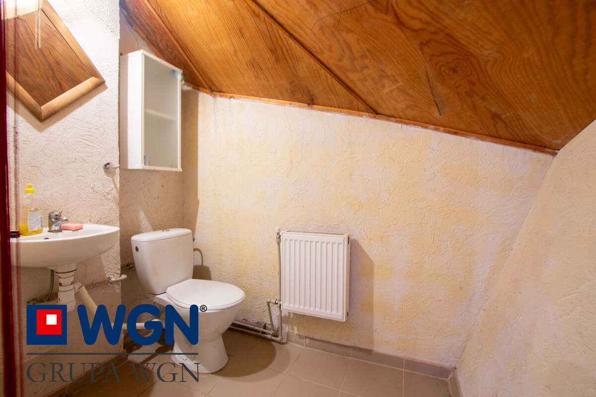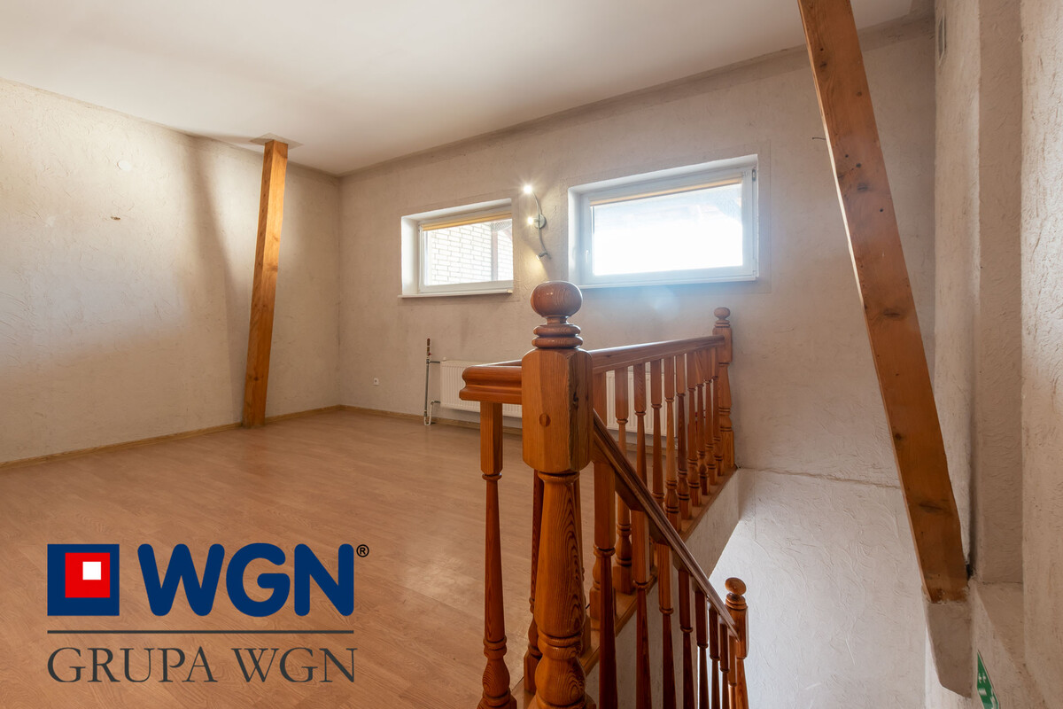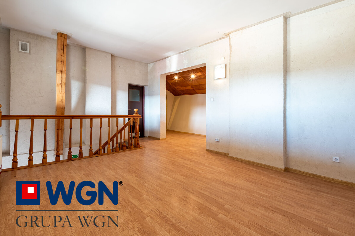 Na piętro prowadzi frontowe wejście do budynku, a znajduję się tam jedna sala użytkowa i wydzielone dodatkowe WC.