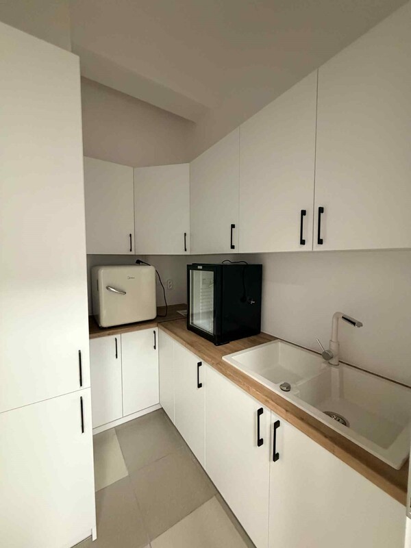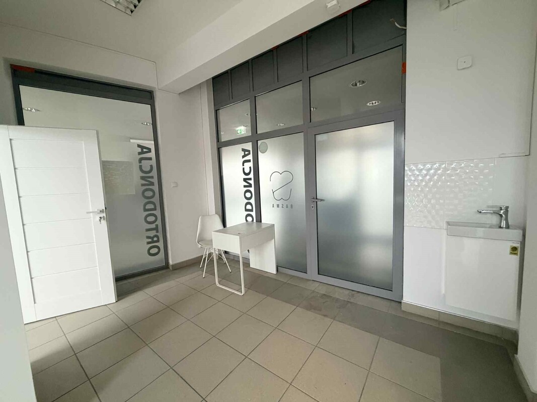 - Gabinet – z wydzieloną strefą czystą i brudną – idealny na działalność lekarską, kosmetologiczną lub inną usługową. Posiada podłączenie pod fotel stomatologiczny (doprowadzona woda i sprężone powietrze).
