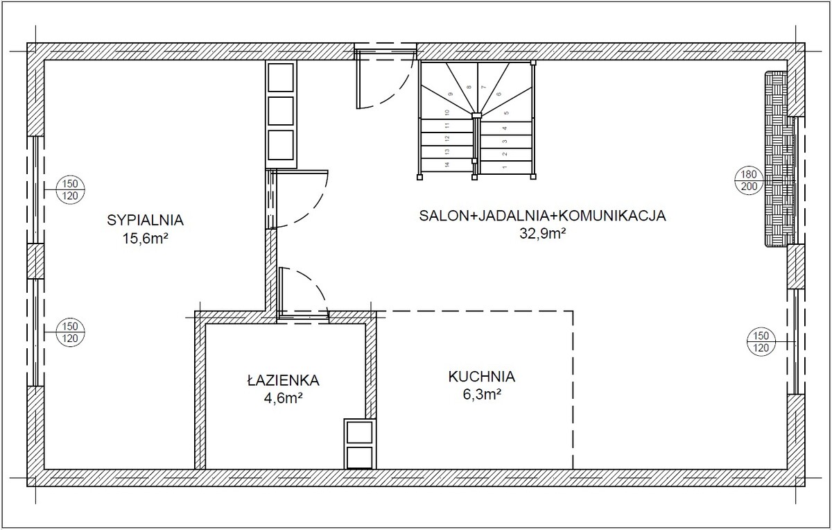 Powierzchnia: 70 m² powierzchni użytkowej, a dzięki skosom aż 80 m² powierzchni całkowitej ("po podłodze").
