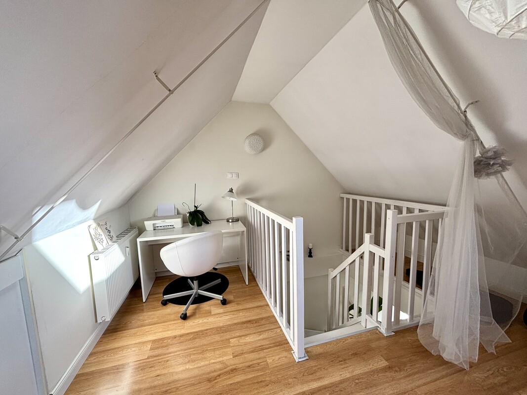 Otwarta przestrzeń o powierzchni użytkowej 10 m² (po podłodze 20 m²). Idealna na domowe biuro, pokój gościnny lub strefę relaksu. Na antresoli jest możliwość zbudowania łazienki.