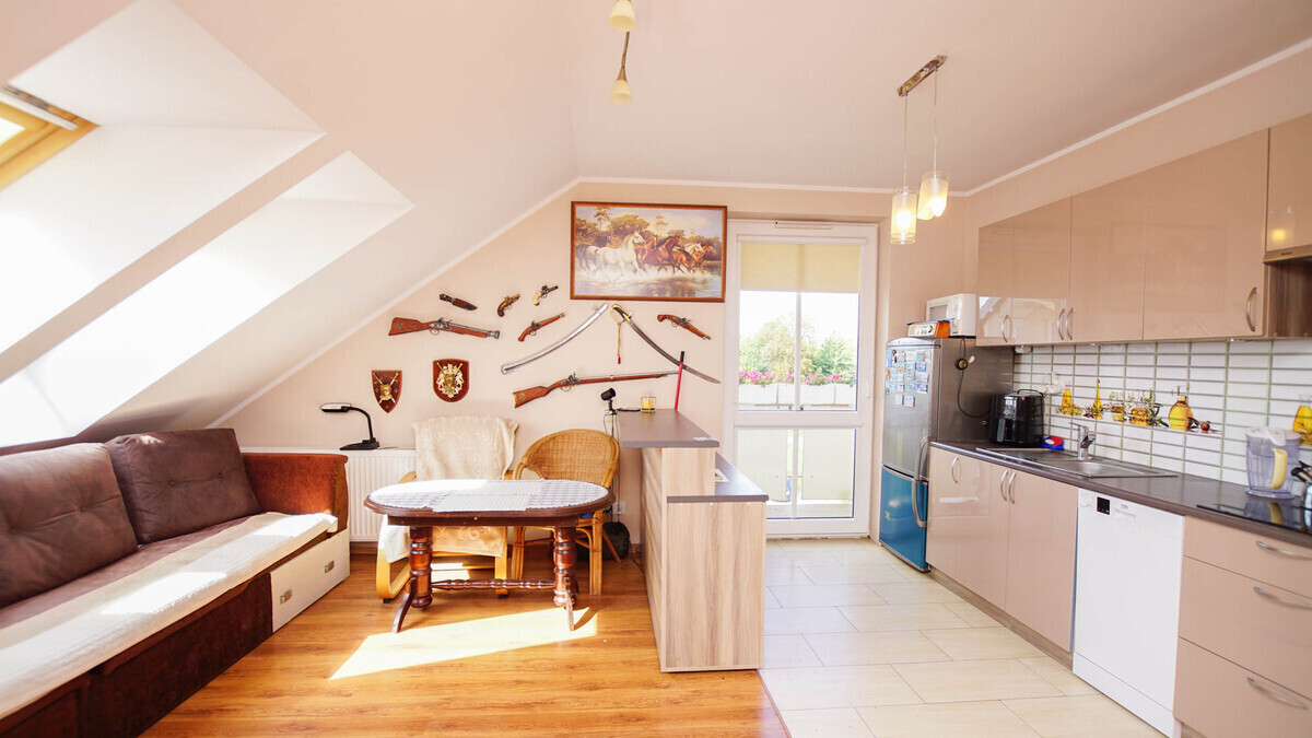 - salon z aneksem kuchennym – funkcjonalna przestrzeń dzienna z dostępem do balkonu