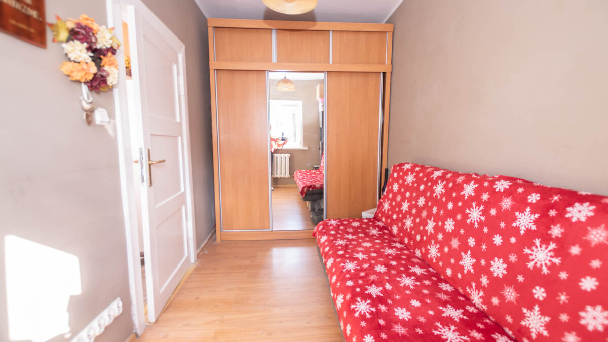 Mieszkanie składa się z dwóch pokoi, łazienki z wc, dużej kuchni oraz przedpokoju. Okna PCV z dwustronną wystawą stron świata wschód-zachód. Instalacja elektryczna miedziana wymieniona w tamtym roku według oświadczenia właściciela.