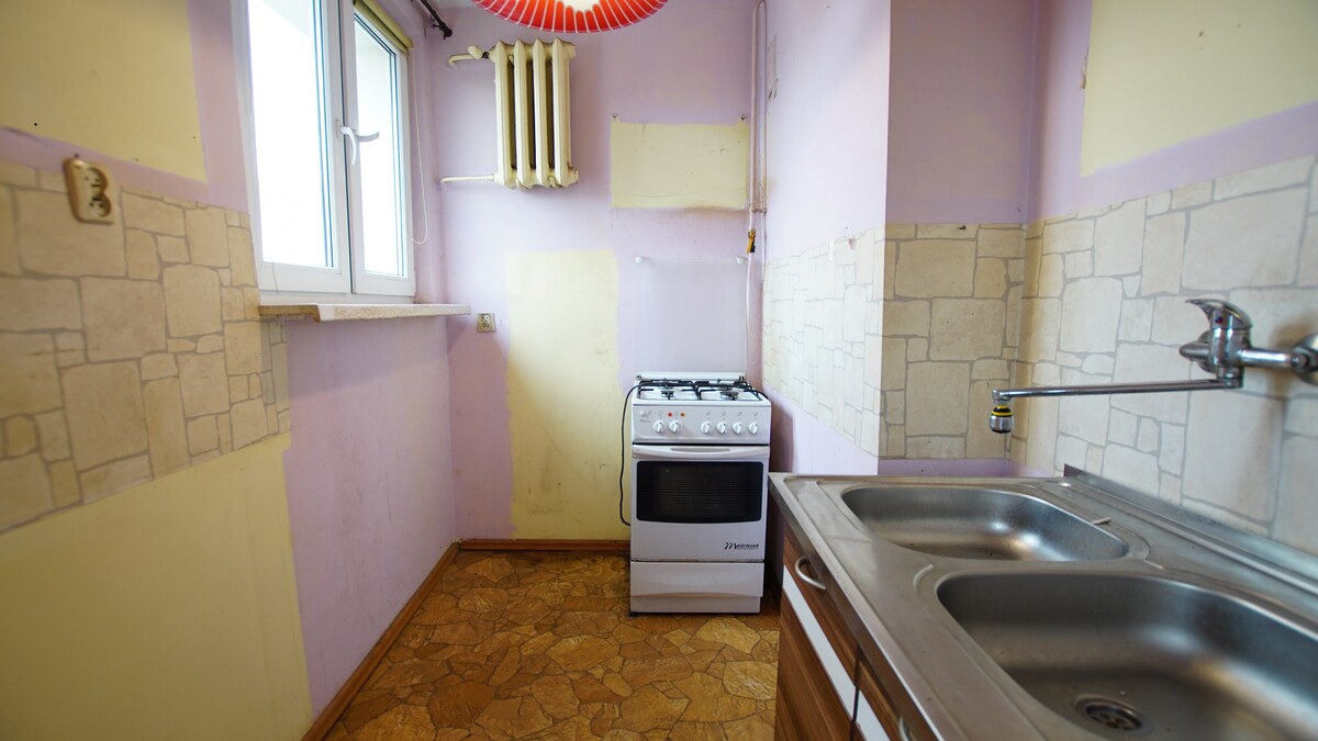 Mieszkanie składa się z dwóch pokoi, łazienki z wc, kuchni z oknem oraz przedpokoju. Lokal wymaga remontu, co daje pełną swobodę aranżacji i możliwość stworzenia wnętrza dopasowanego do swoich potrzeb.