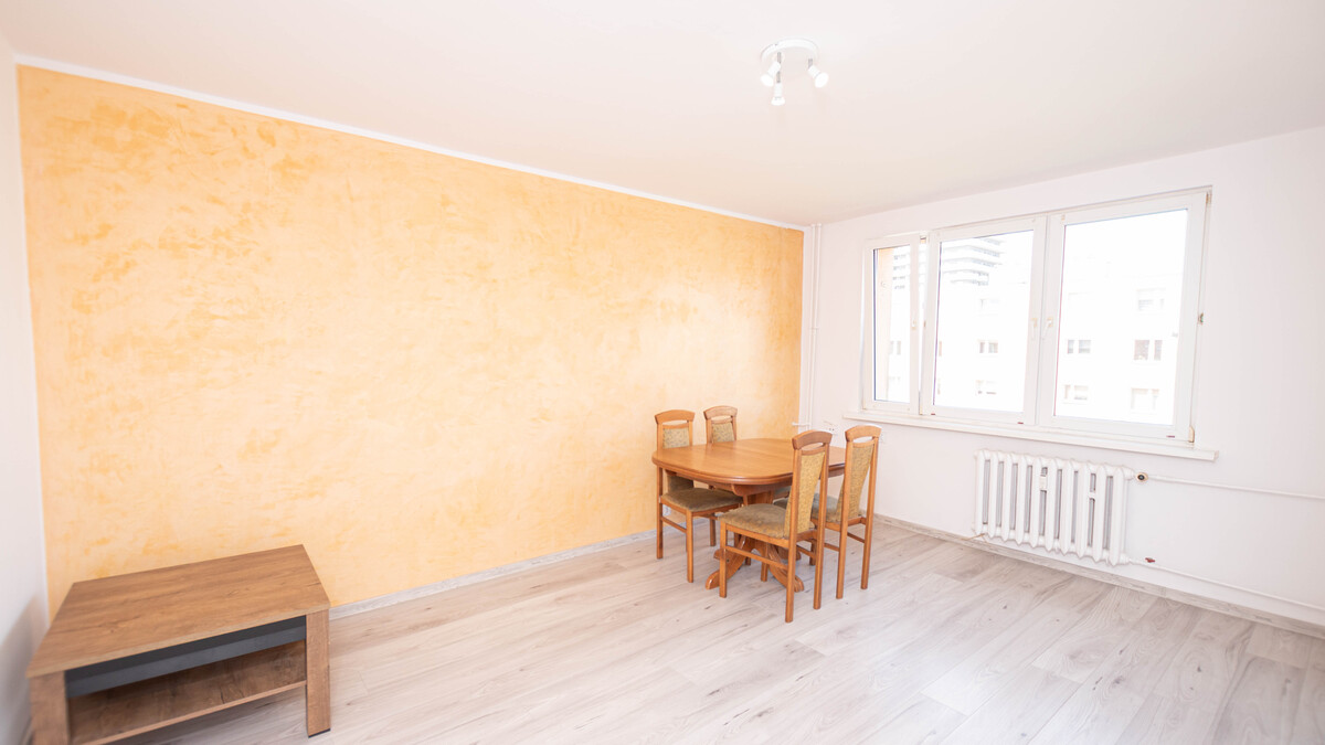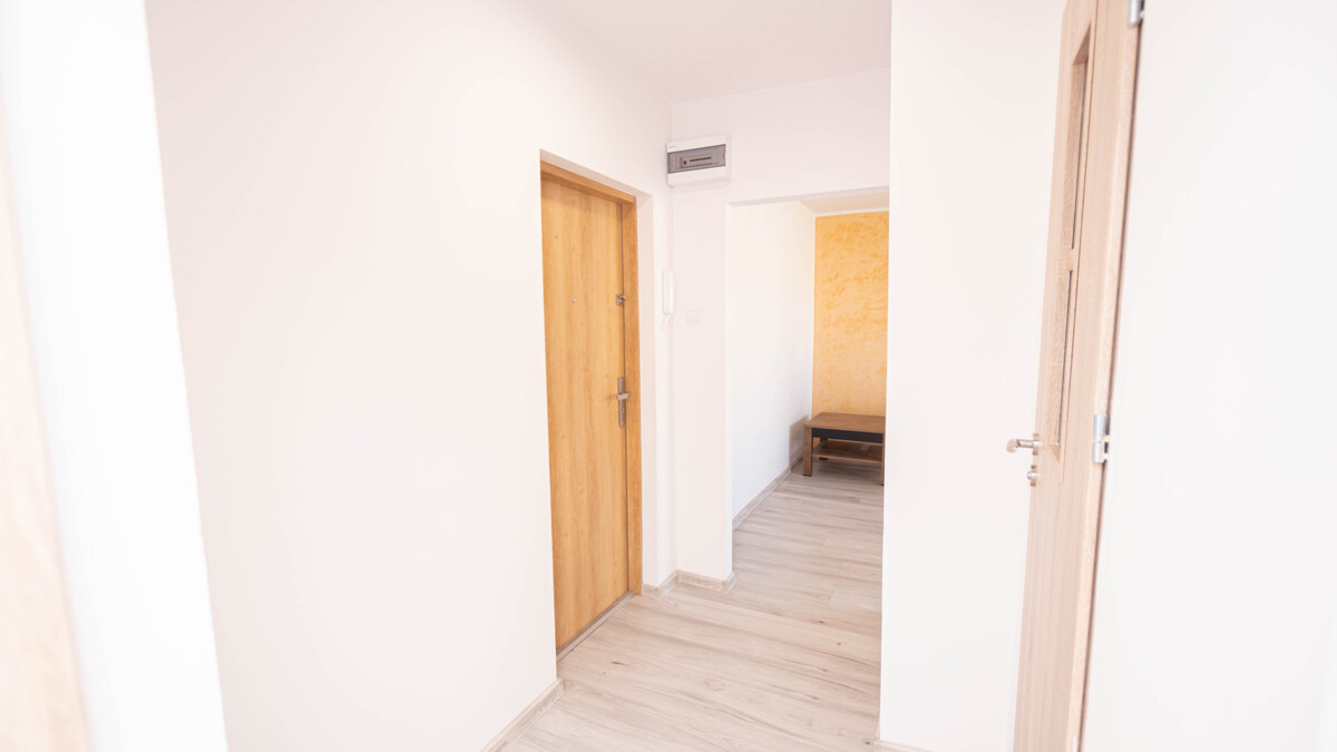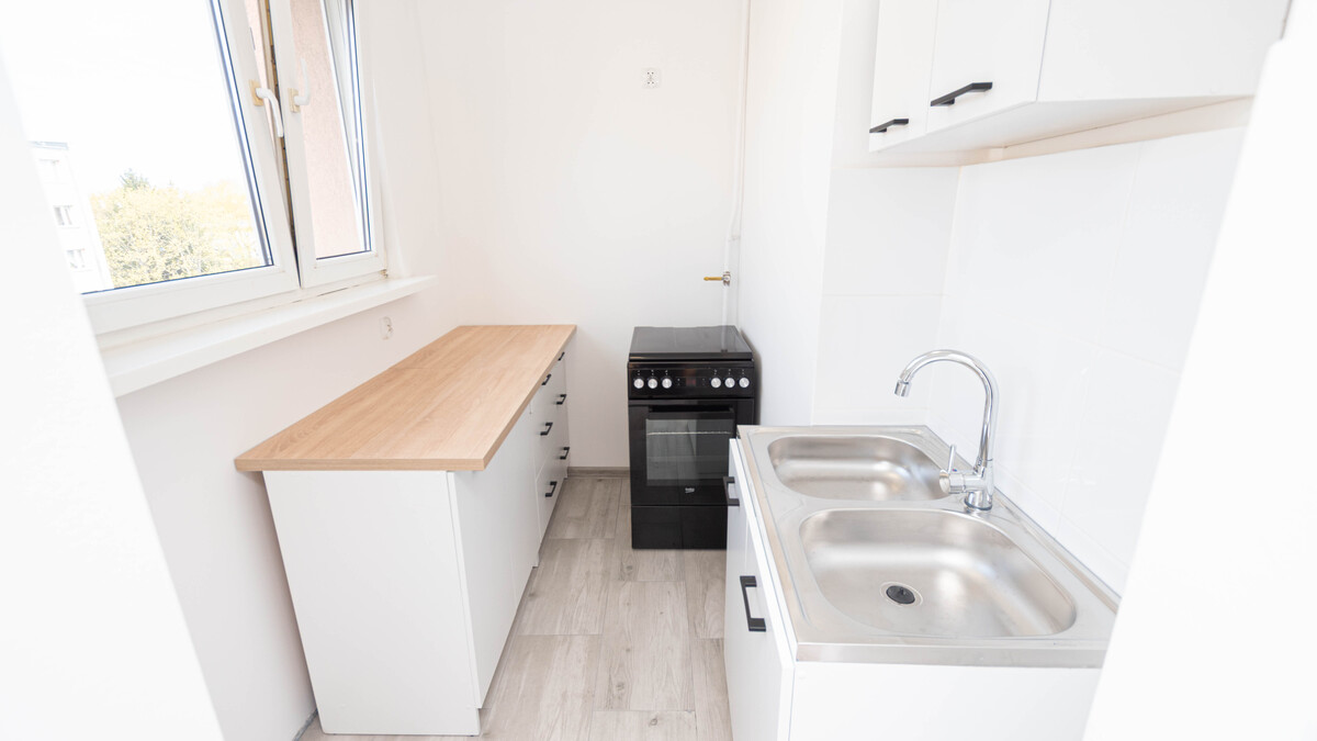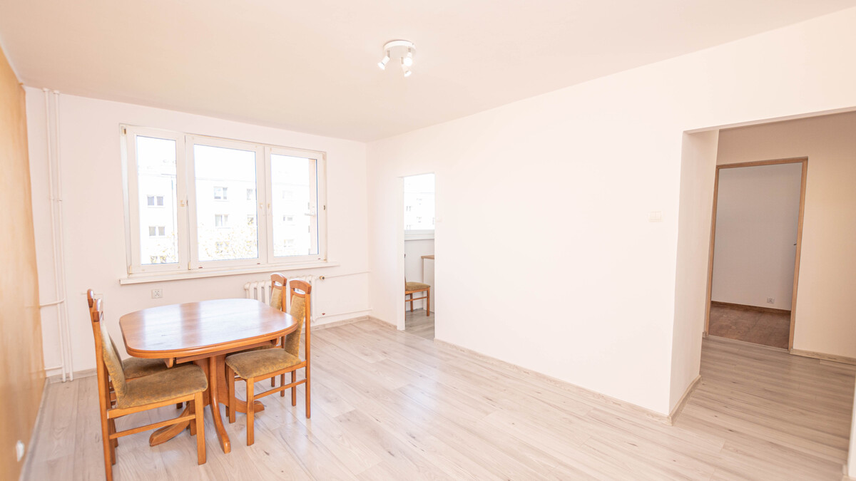 Lokal składa się z ustawnego, jasnego salonu, sypialni, oddzielnej kuchni z oknem, łazienki z WC oraz przedpokoju. Mieszkanie po remoncie – ściany w pokojach wyrównane, wycekolowane i odmalowane, a na podłogach położone estetyczne panele. Dzięki wschodniej ekspozycji okien wnętrza są dobrze doświetlone już od porannych godzin, co nadaje im przyjemny, ciepły charakter.
