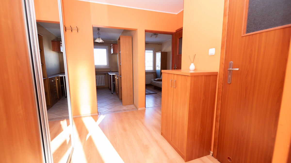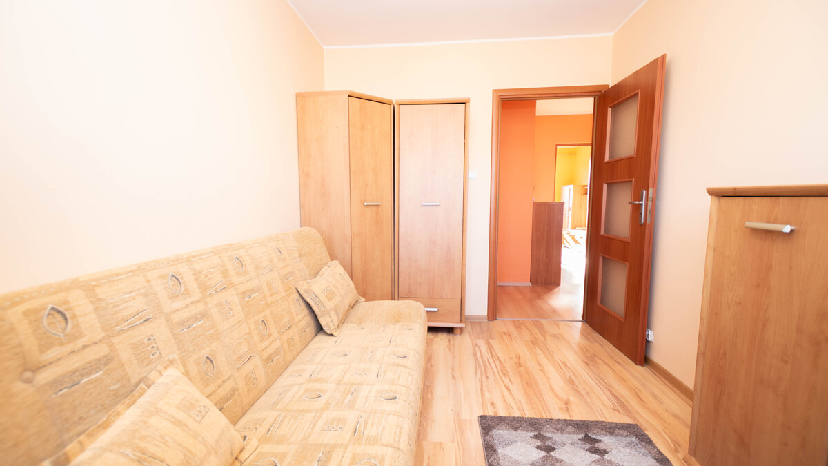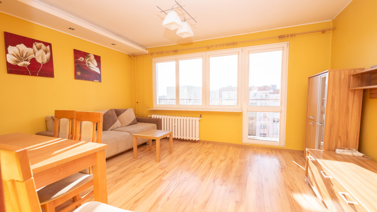 Lokal składa się z dużego salonu z wyjściem na balkon od strony południowej, sypialni, kuchni, łazienki, wc oraz przedpokoju. Okna PCV z wystawą stron świata: północ-południe. Mieszkanie do odświeżenia lub własnej aranżacji. W 2007 r. wymienione wszystkie okna - według oświadczenia właściciela. Możliwość pozostawienia umeblowania i sprzętu AGD widocznego na zdjęciach.