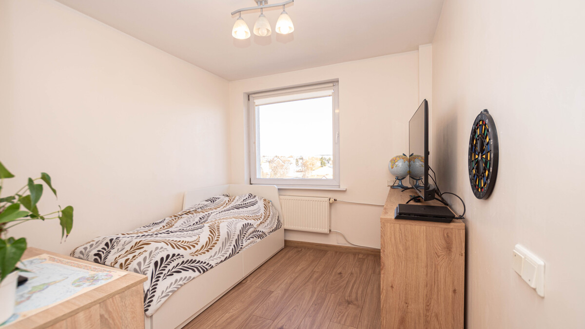Mieszkanie składa się z salonu z wyjściem na balkon od strony zachodniej, trzech pokoi, łazienki, wc, kuchni oraz przedpokoju. Okna PCV z dwustronną wystawą stron świata wschód-zachód.