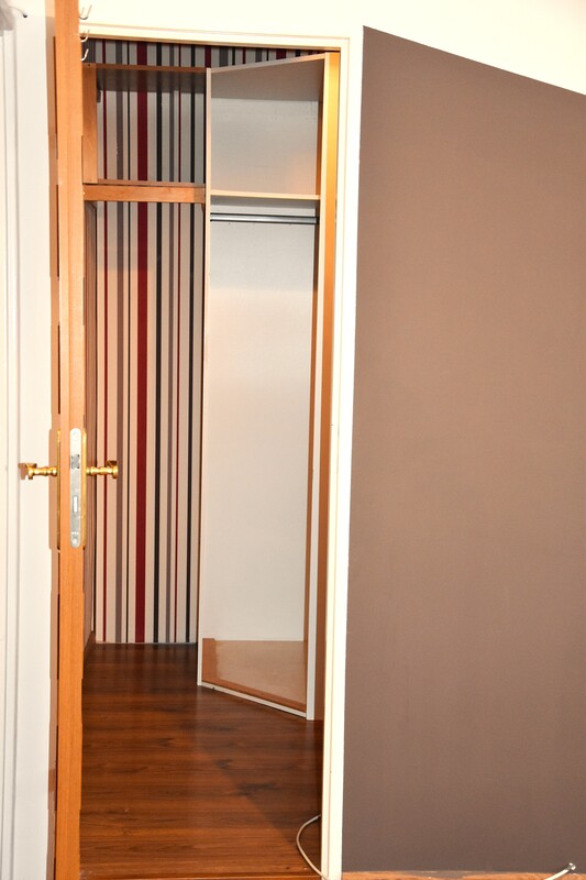ciekawie wygospodarowana garderoba zamykana drzwiami