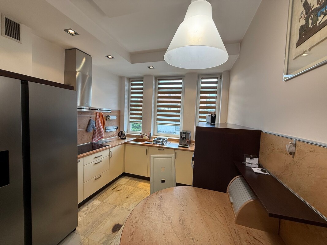 Mieszkanie znajduje się w ścisłym centrum miasta w dobrze skomunikowanej okolicy, w pobliżu przedszkole, szkoła, przychodnia, park, liczne sklepy, mimo cichej i spokojnej okolicy, w niedalekiej odległości znajduje się wiele punktów handlowo-usługowych.