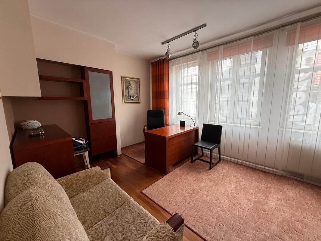 Mieszkanie w kamienicy na 3 piętrze, 4 pokojowe, łazienka z WC, przedpokój, piwnica i część strychu. Łączna powierzchnia mieszkania wraz z piwnicą 153,60 m2 /piwnica 33,60 m2/. Mieszkanie do odświeżenia, elektryka wraz z hydrauliką wymieniona, ogrzewanie wraz z ciepłą wodą z piecyka gazowego dwufunkcyjnego. Opłaty miesięczne: 400 PLN. Miejsce parkingowe przed budynkiem
