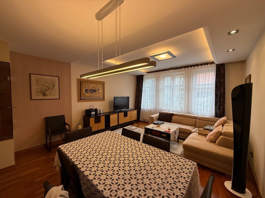Mieszkanie w kamienicy na 3 piętrze, 4 pokojowe, łazienka z WC, przedpokój, piwnica i część strychu. Łączna powierzchnia mieszkania wraz z piwnicą 153,60 m2 /piwnica 33,60 m2/. Mieszkanie do odświeżenia, elektryka wraz z hydrauliką wymieniona, ogrzewanie wraz z ciepłą wodą z piecyka gazowego dwufunkcyjnego. Opłaty miesięczne: 400 PLN. Miejsce parkingowe przed budynkiem