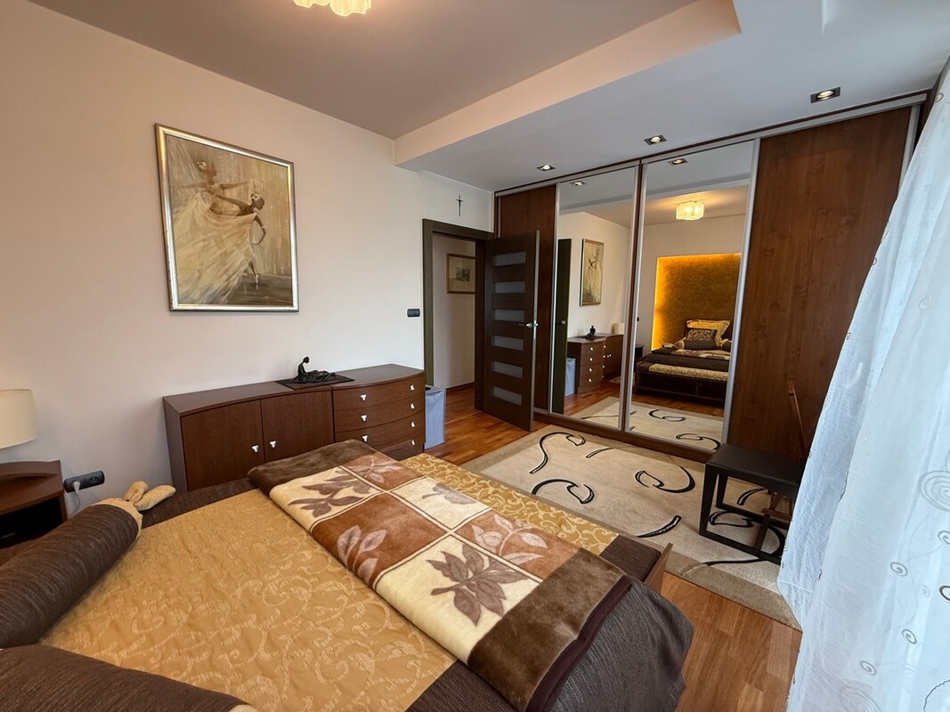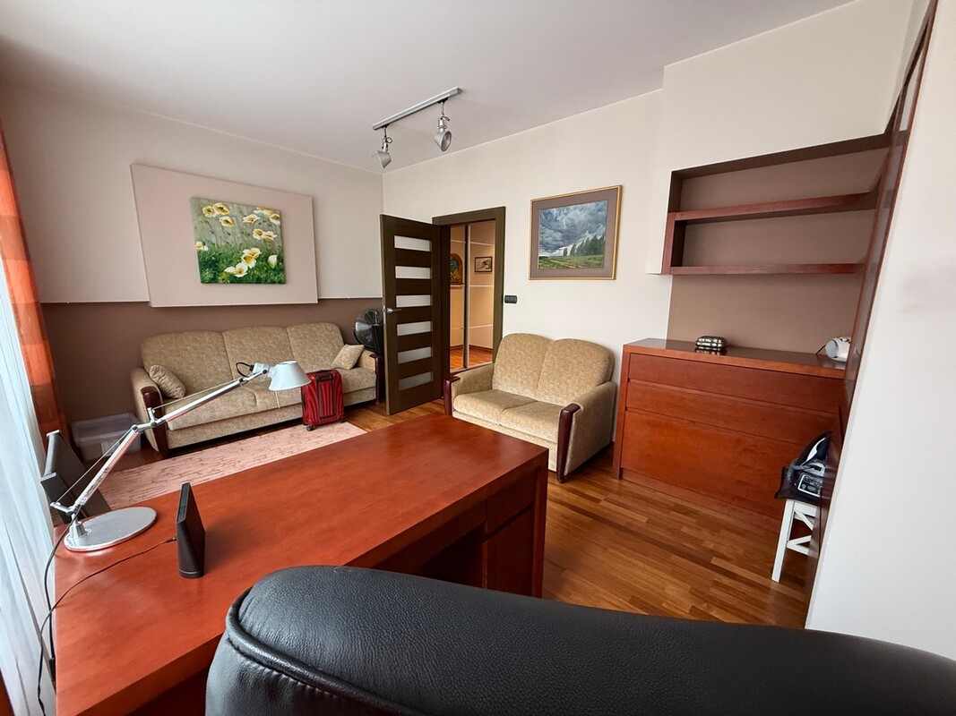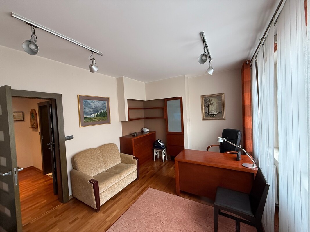 Salon /22,60 m2/, pokój /21,80 m2/ z przeznaczeniem gościnnym lub biurowym, sypialnia z wyjściem na taras /17,90 m2/, oddzielna, przestronna kuchnia /10,50 m2/ w zabudowie i sprzętem AGD, łazienka z WC /4,80 m2/ w której jest wanna i oddzielnie prysznic, przedpokój z pojemnymi szafami w zabudowie.