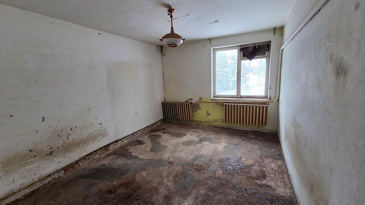 Mieszkanie do remontu, 2 pokoje, kuchnia, łazienka z WC, przedpokój, pomieszczenie gospodarcze na zewnątrz oraz działka ogrodzona z możliwością zabudowy o powierzchni: 458 m2.