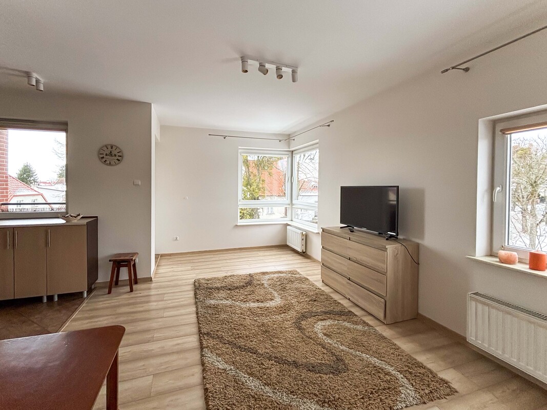 Zarówno z salonu, jak i z sypialni prowadzi wyjście na balkon, co zwiększa komfort użytkowania. Mieszkanie jest umeblowane i gotowe do wprowadzenia. Do lokalu przynależy również miejsce parkingowe w hali garażowej, co stanowi duże udogodnienie w tej części miasta.