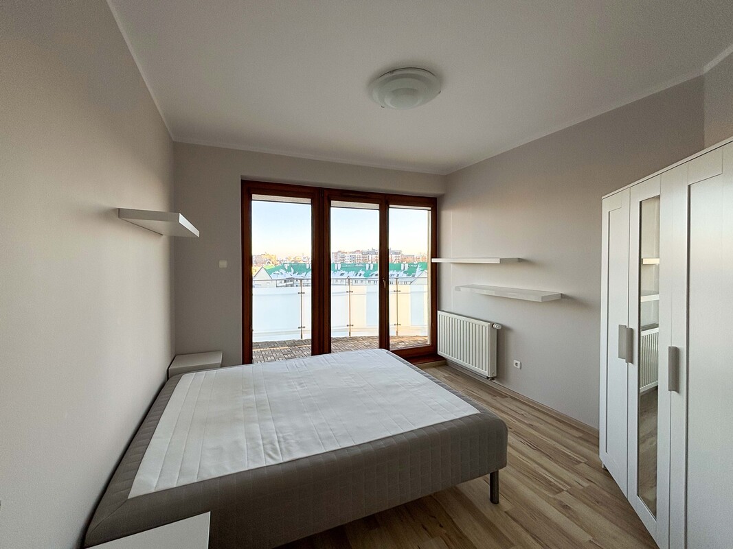 Oferujemy do wynajmu przestronne, 3-pokojowe mieszkanie o wysokim standardzie, o powierzchni 80 m2,usytuowane na 6.piętrze nowoczesnego budynku z windą. Apartament składa się z jasnego salonu z wyjściem na taras, funkcjonalnego aneksu kuchennego, dwóch komfortowych sypialni, łazienki oraz osobnej toalety. Wnętrze zostało estetycznie i starannie wykończone, z dużą dbałością o komfort przyszłych najemców. Mieszkanie jest w pełni wyposażone w sprzęt AGD, m. in. lodówkę, kuchenkę, zmywarkę oraz pralkę. Dodatkowym atutem jest komórka lokatorska znajdująca się na klatce schodowej oraz miejsce parkingowe w garażu podziemnym, udostępnione do wyłącznej dyspozycji najemcy.