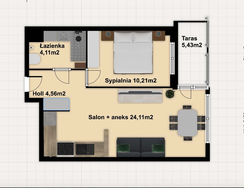 45 M2 - 2 POKOJE, KUCHNIA I ŁAZIENKA - SMART HOME