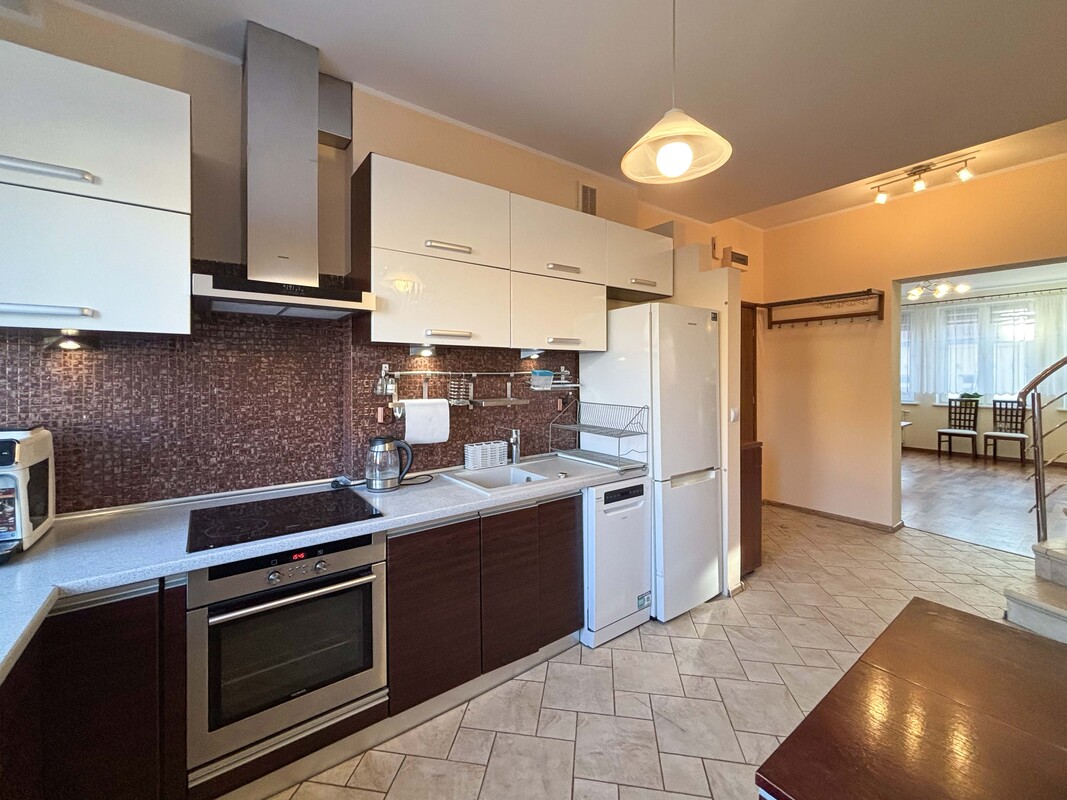Przestronne, dwupoziomowe mieszkanie o powierzchni 93,15 m², położone na I piętrze budynku. Lokal składa się z dużej kuchni z oknami, w pełni wyposażonej zabudowy kuchennej (w tym ekspresu do kawy), przestronnego salonu, przedpokoju, dwóch dużych sypialni – w tym jednej z balkonem – oraz łazienki. Mieszkanie jest dwustronne, bardzo dobrze doświetlone i słoneczne, co znacząco podnosi komfort codziennego użytkowania. Funkcjonalny układ pomieszczeń oraz duża powierzchnia sprawiają, że jest to idealna propozycja dla rodziny lub osób poszukujących przestronnego mieszkania. Ogrzewanie miejskie zapewnia wygodę oraz stabilność kosztów eksploatacyjnych.