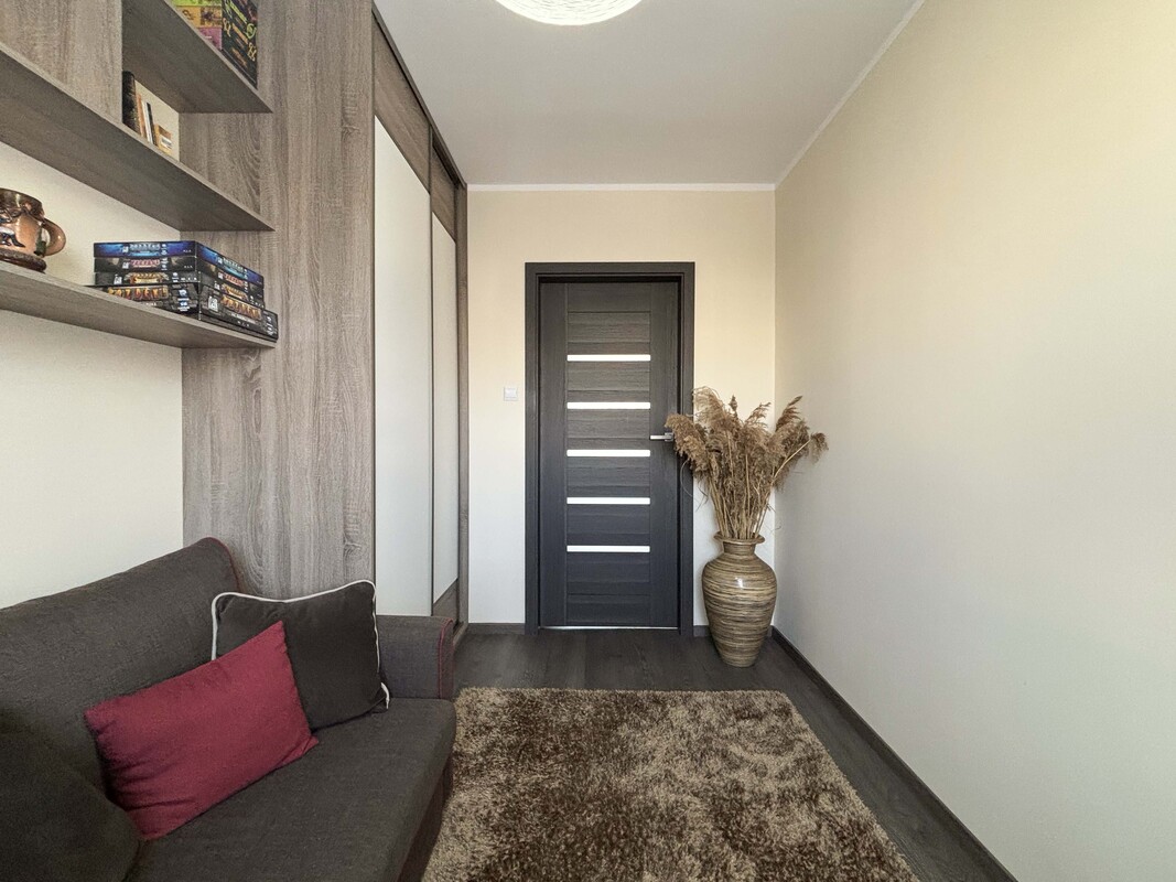 Wnętrze zostało w pełni wykończone w spójnym, stylowym i harmonijnym standardzie, z dbałością o estetykę oraz praktyczne rozwiązania. Mieszkanie sprzedawane jest z pełnym umeblowaniem, dzięki czemu nowy właściciel może wprowadzić się bez konieczności ponoszenia dodatkowych kosztów związanych z aranżacją.