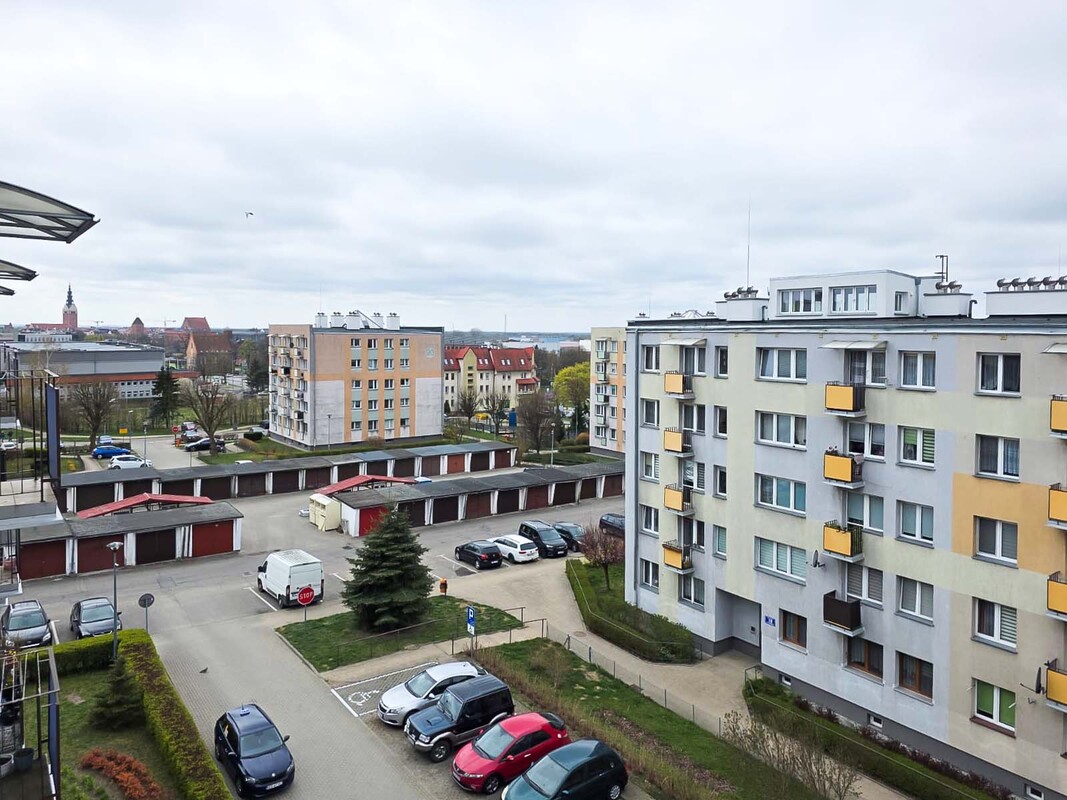 Nieruchomość zlokalizowana jest przy ul. Gwiezdnej w Elblągu, w spokojnej i dobrze skomunikowanej części miasta. Okolica charakteryzuje się dużą ilością zieleni – przed budynkiem znajdują się zadbane skwery, które sprzyjają codziennemu wypoczynkowi. W pobliżu dostępna jest pełna infrastruktura miejska: sklepy, punkty usługowe, szkoły oraz przystanki komunikacji miejskiej, co zapewnia wygodne funkcjonowanie na co dzień. Dodatkowym atutem jest ogólnodostępny parking dla mieszkańców, zabezpieczony szlabanem na pilota.