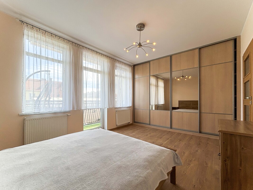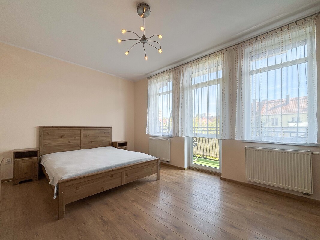 Przestronne, dwupoziomowe mieszkanie o powierzchni 93,15 m², położone na I piętrze budynku. Lokal składa się z dużej kuchni z oknami, w pełni wyposażonej zabudowy kuchennej (w tym ekspresu do kawy), przestronnego salonu, przedpokoju, dwóch dużych sypialni – w tym jednej z balkonem – oraz łazienki. Mieszkanie jest dwustronne, bardzo dobrze doświetlone i słoneczne, co znacząco podnosi komfort codziennego użytkowania. Funkcjonalny układ pomieszczeń oraz duża powierzchnia sprawiają, że jest to idealna propozycja dla rodziny lub osób poszukujących przestronnego mieszkania. Ogrzewanie miejskie zapewnia wygodę oraz stabilność kosztów eksploatacyjnych.