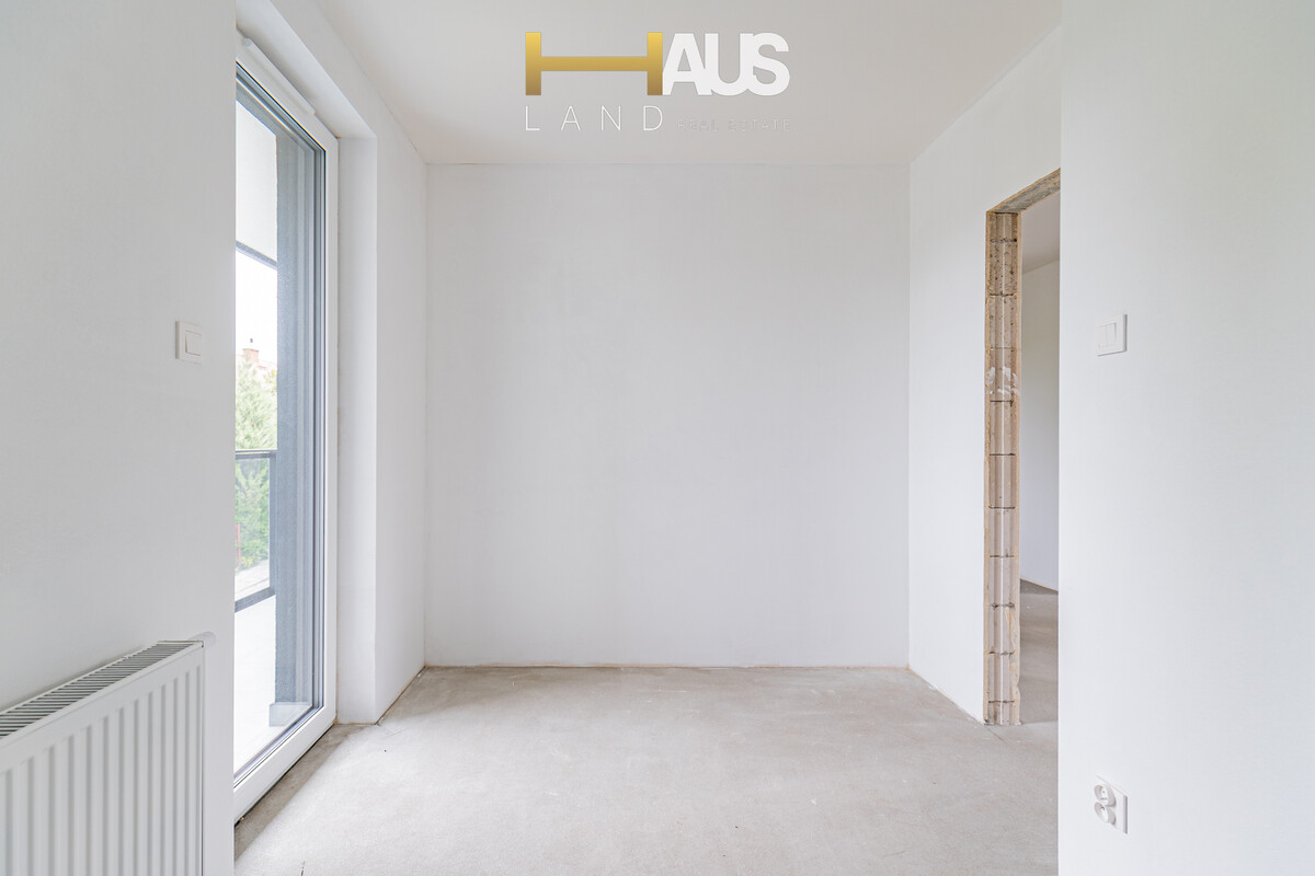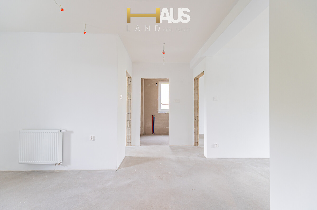 - Funkcjonalny układ pomieszczeń – salon z otwartą kuchnią, dwie niezależne sypialnie, łazienka i przestronny korytarz,