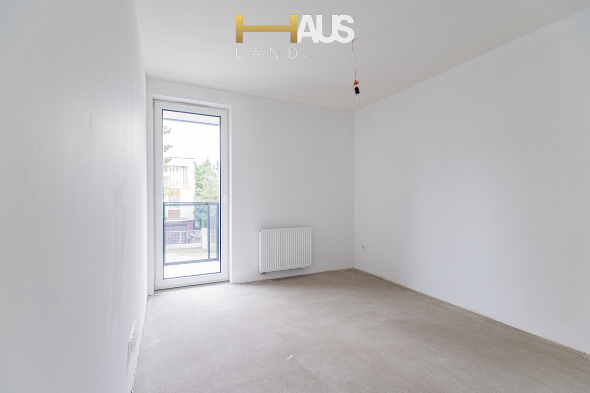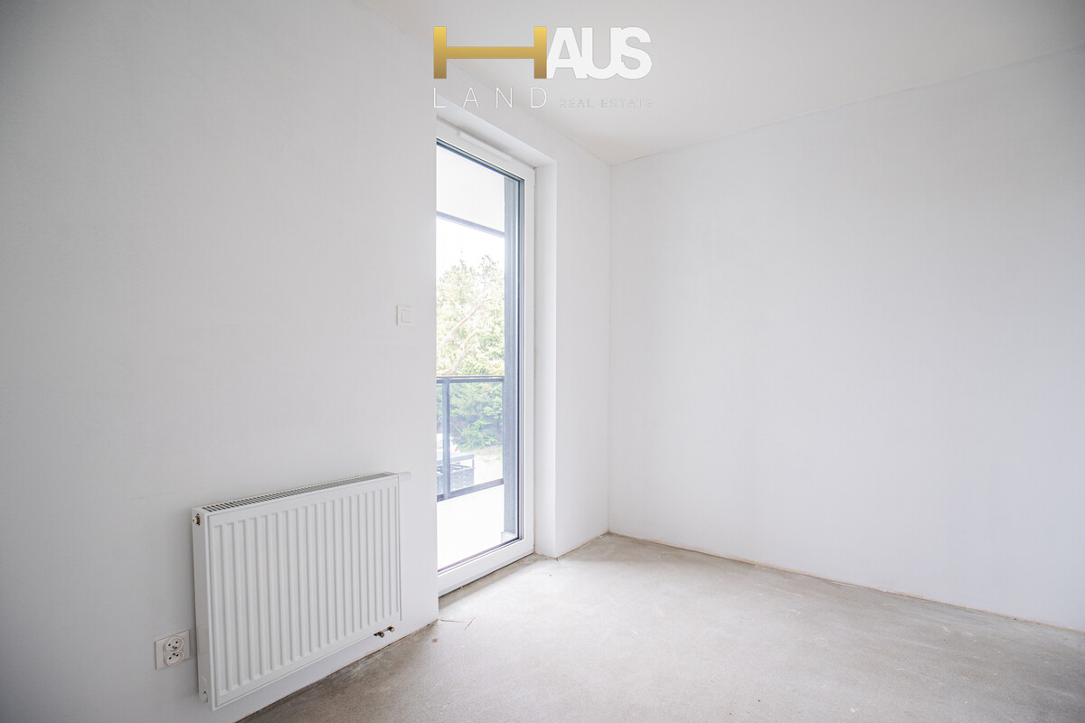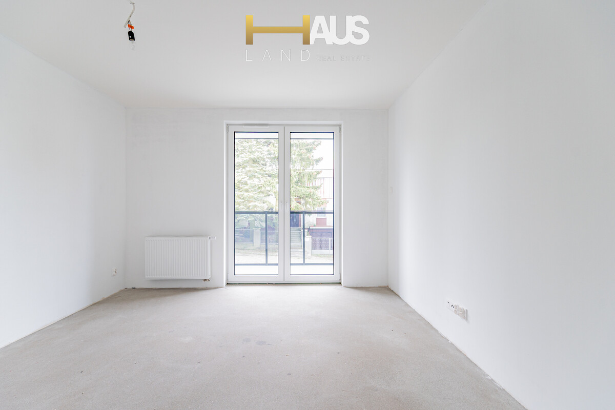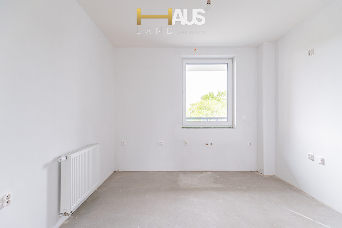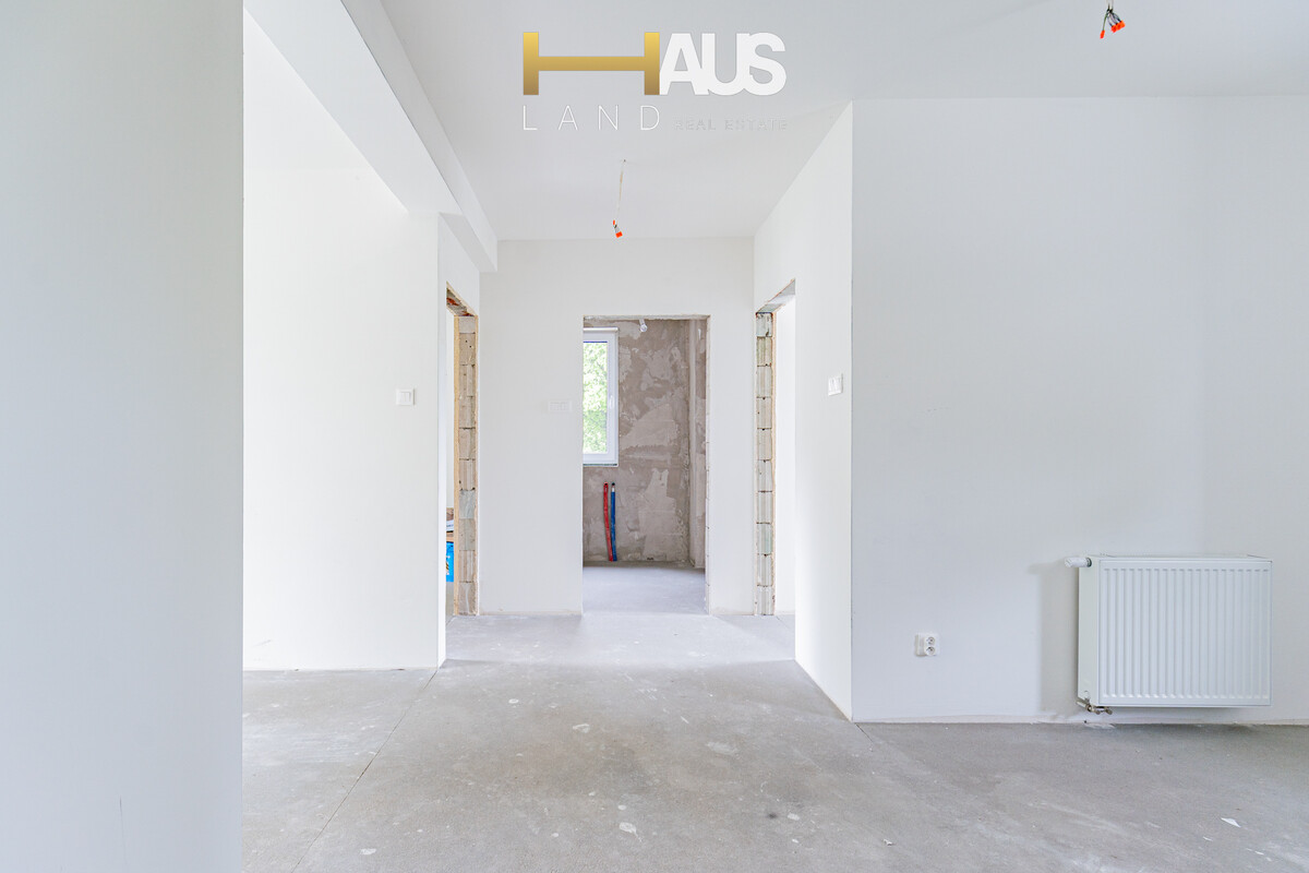 - Funkcjonalny układ pomieszczeń – salon z otwartą kuchnią, dwie niezależne sypialnie, łazienka i przestronny korytarz,