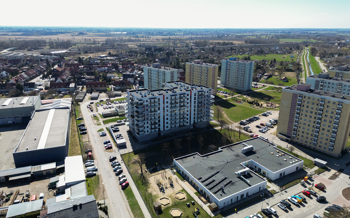 Nowy blok, zbudowany w nowoczesnej technologii posiadający osiem pięter. W budynku zamontowano cichobieżne windy. Do dyspozycji mieszkańców przy bloku parking, zabezpieczony szlabanem, a wejście do budynku zabezpieczone domofonem. Osiedle monitorowane.