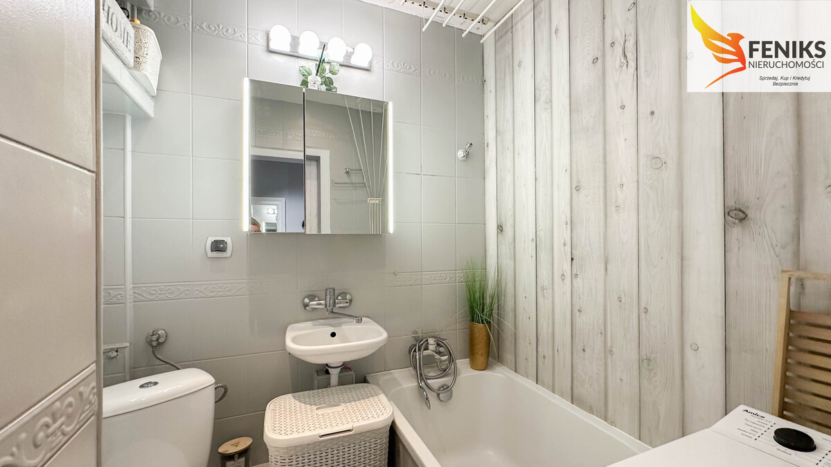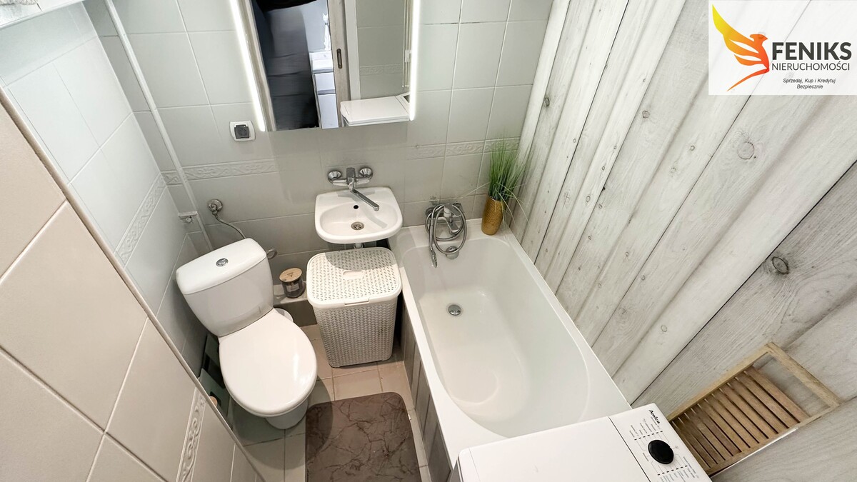 Lokal składa się z pokoju z aneksem kuchennym, sypialni, łazienki z wanną oraz przedpokoju, do mieszkania przynależy piwnica. Mieszkanie po remoncie, nowocześnie urządzone gotowe do wprowadzenia. Wystawa okien w kierunku zachodnim co czyni je dobrze doświetlonym od południa do zachodu słońca. Mieszkanie kompaktowe idealne dla małej rodziny, pary lub singla. Wyposażenie do uzgodnienia z właścicielem.
