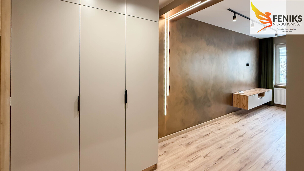 Mieszkanie o powierzchni 38 m², położone na pierwszym piętrze kamienicy jest nowoczesne, i w pełni wykończone. Lokal przeszedł generalny remont i sprzedawany jest z kompletnym umeblowaniem oraz wyposażeniem AGD, dzięki czemu jest gotowy do zamieszkania bez konieczności ponoszenia dodatkowych kosztów. Do mieszkania przynależy piwnica o powierzchni 5 m², a dodatkowym atutem jest schowek znajdujący się na klatce schodowej, który ma ok 1 m2. Wnętrze zostało zaprojektowane z myślą o funkcjonalności i komforcie. Mieszkanie składa się z przestronnego salonu z aneksem kuchennym, oddzielnej sypialni, dużej nowoczesnej łazienki oraz holu z zabudową. Strefa dzienna obejmuje kuchnię wykonaną na wymiar, wyposażoną w pełne AGD, w tym lodówkę, zmywarkę, kuchenkę gazową z piekarnikiem elektrycznym oraz okap. Część wypoczynkową tworzy wygodna sofa z funkcją spania oraz nowoczesna, wisząca szafka RTV. Całość dopełnia nowoczesne oświetlenie sufitowe oraz dekoracyjne oświetlenie LED, które podkreśla charakter wnętrza. Sypialnia stanowi przytulną i komfortową przestrzeń do odpoczynku, wyposażoną w łóżko wykonane na wymiar, dekoracyjną ścianę oraz nowoczesne oświetlenie. Łazienka została wykończona w wysokim standardzie i oferuje prysznic typu walk-in z niskim brodzikiem, blat z dwiema umywalkami nablatowymi, pralkę w zabudowie, lustro z podświetleniem LED, wiszący grzejnik oraz toaletę. Hol zapewnia dużą ilość miejsca do przechowywania dzięki szafom w zabudowie wykonanym na wymiar, w tym pojemnej zabudowie pod sufit. Mieszkanie przeszło kompleksowy remont obejmujący wymianę instalacji elektrycznej i hydraulicznej, wykonanie nowych podłóg, gładzi oraz wykończeń malarskich, a także montaż nowego pieca gazowego i grzejników. Zastosowano niezależne, ekonomiczne ogrzewanie gazowe.