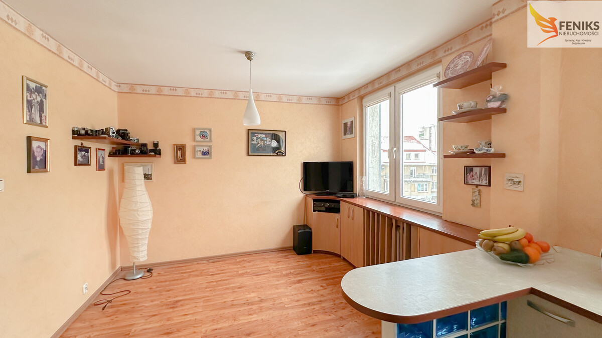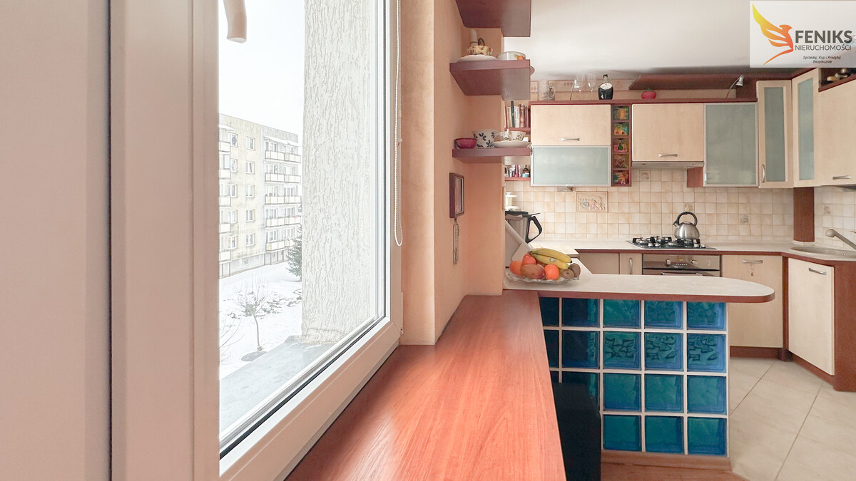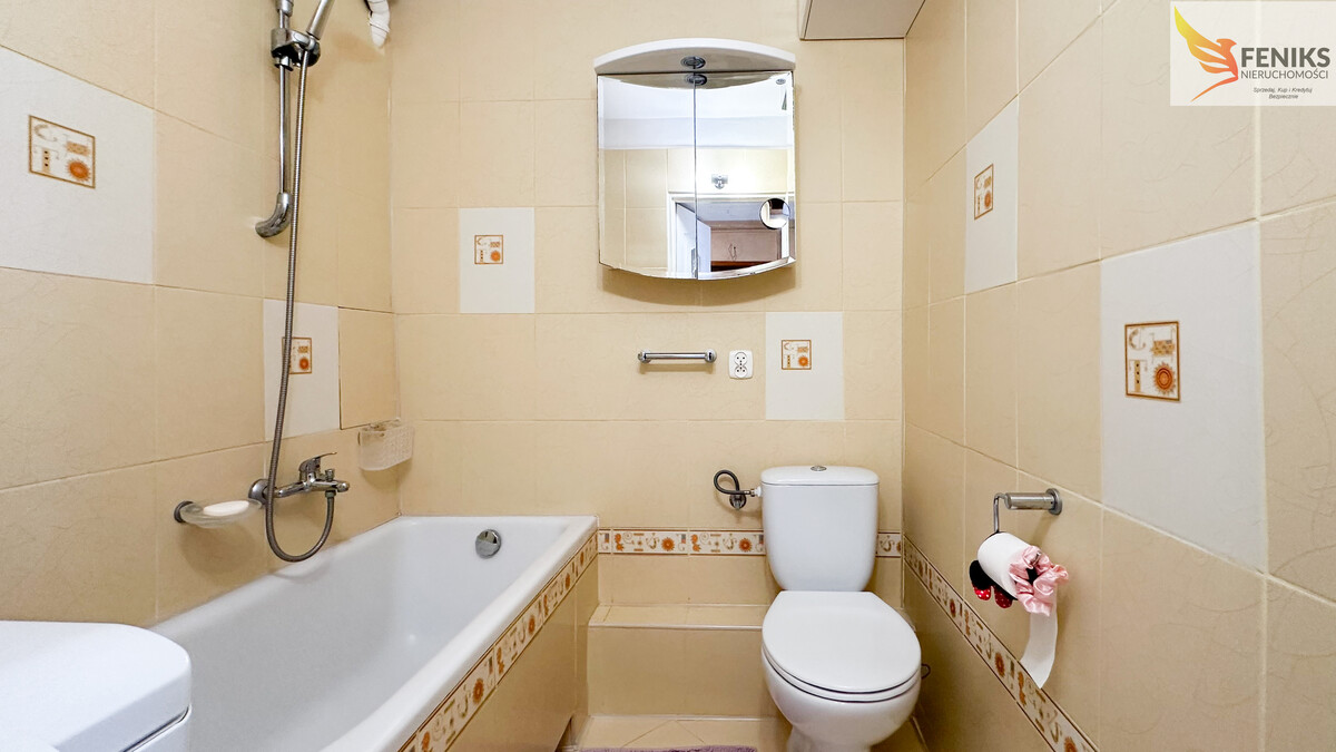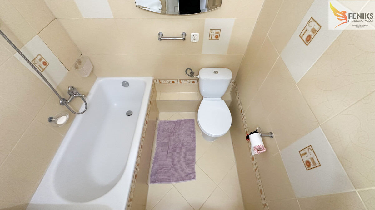 Obecnie duży pokój pełni funkcję sypialni z wyjściem na balkon, kuchnia połączona z pokojem tworzy nowoczesną, dzienną strefę życia. Układ pomieszczeń daje elastyczność aranżacji — w kilka dni można przywrócić pierwotny podział pomieszczeń na oddzielną kuchnię i pokój. Jasne, ciepłe i przytulne wnętrza, dwustronna ekspozycja okien wschód– zachód zapewnia doskonałe doświetlenie mieszkania przez cały dzień. Mieszkanie jest ciepłe i gotowe do zamieszkania. Okna w mieszkaniu PCV, instalacja elektryczna miedziana, wszystkie media z miasta, na podłogach w pokojach położono panele, na przedpokoju, kuchni i w łazience kafle. Kuchnia z oknem wyposażona w sprzęt AGD: lodówka, kuchenka gazowa, piekarnik elektryczny.