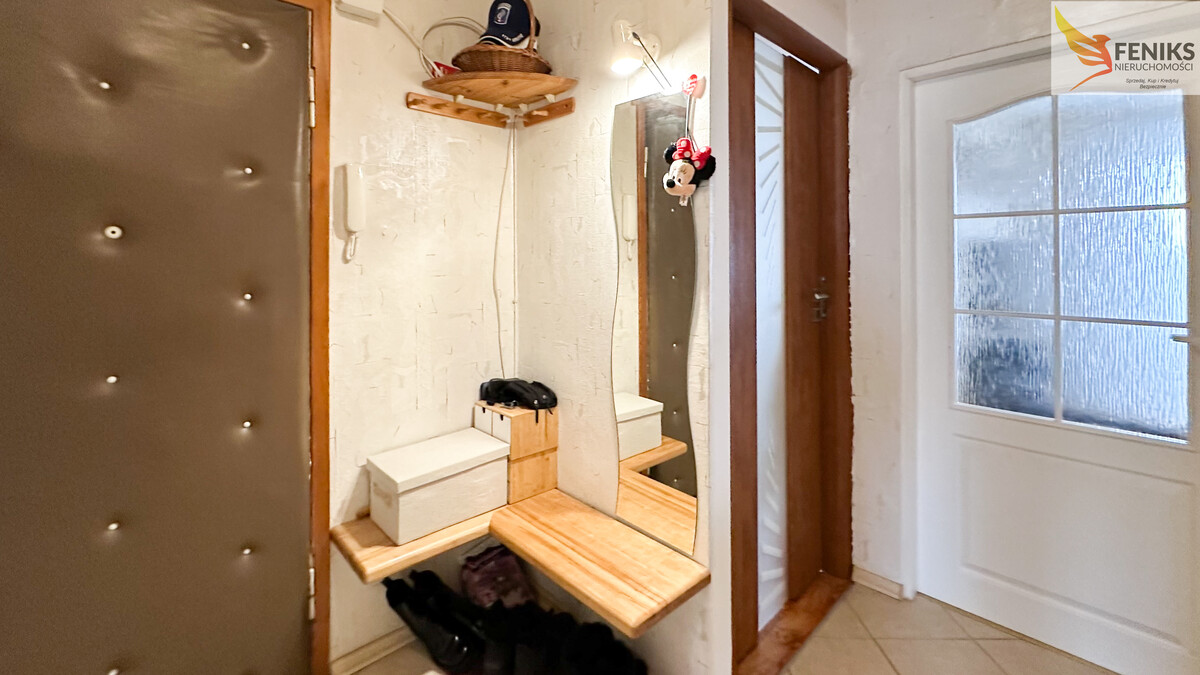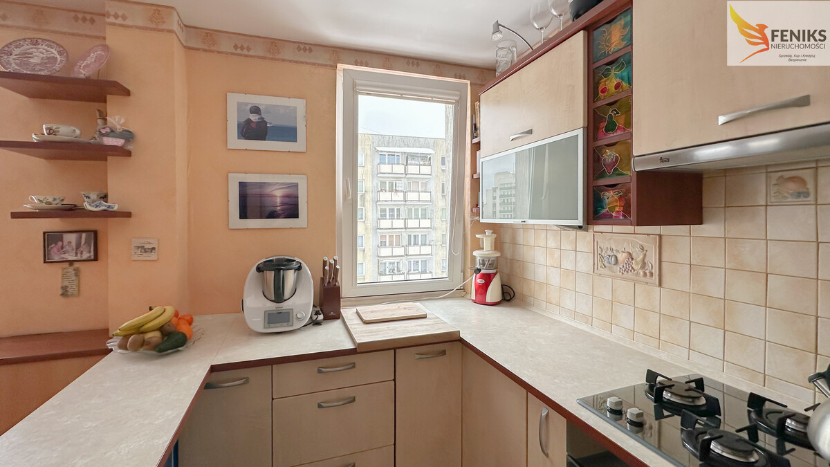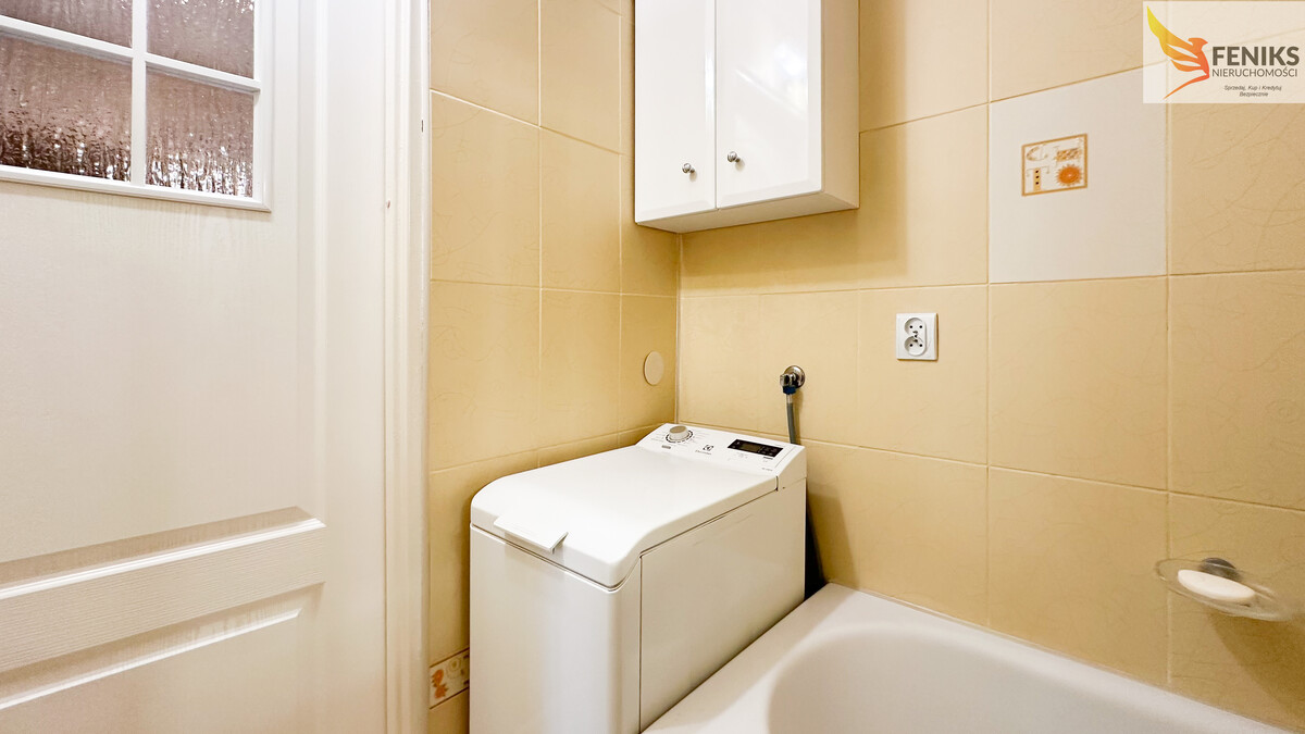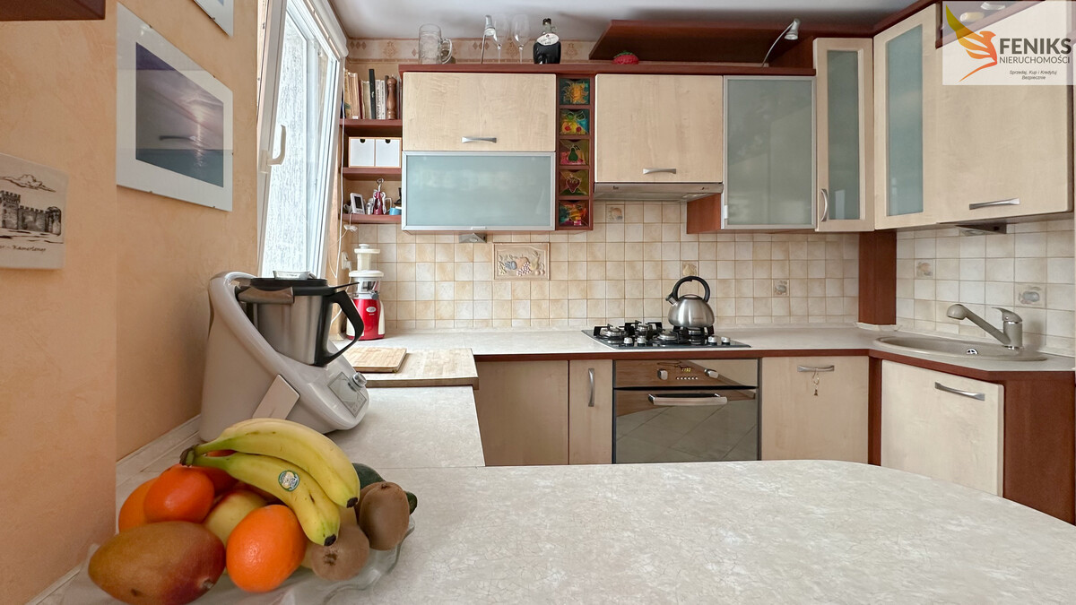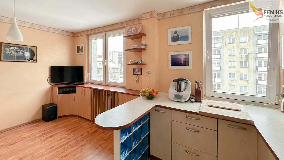 Obecnie duży pokój pełni funkcję sypialni z wyjściem na balkon, kuchnia połączona z pokojem tworzy nowoczesną, dzienną strefę życia. Układ pomieszczeń daje elastyczność aranżacji — w kilka dni można przywrócić pierwotny podział pomieszczeń na oddzielną kuchnię i pokój. Jasne, ciepłe i przytulne wnętrza, dwustronna ekspozycja okien wschód– zachód zapewnia doskonałe doświetlenie mieszkania przez cały dzień. Mieszkanie jest ciepłe i gotowe do zamieszkania. Okna w mieszkaniu PCV, instalacja elektryczna miedziana, wszystkie media z miasta, na podłogach w pokojach położono panele, na przedpokoju, kuchni i w łazience kafle. Kuchnia z oknem wyposażona w sprzęt AGD: lodówka, kuchenka gazowa, piekarnik elektryczny.