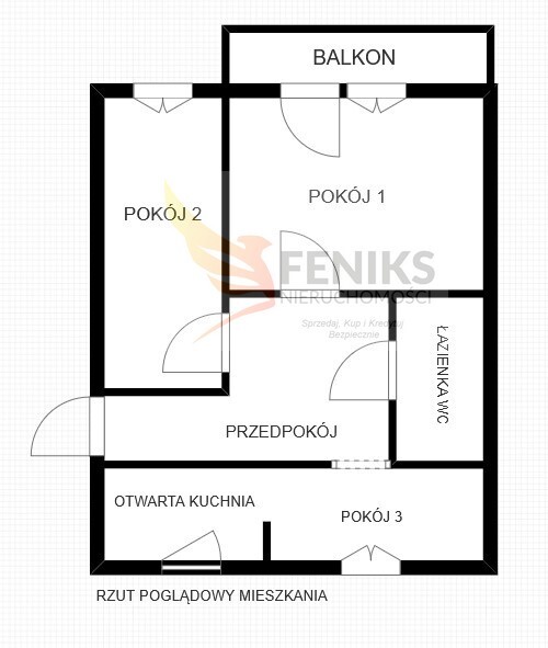 - *Liczba pokoi: 2 samodzielne pokoje + kuchnia otwarta na pokój dzienny