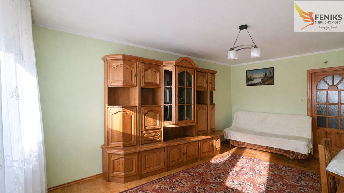 Lokal składa się z 3 oddzielnych pokoi, oddzielnej kuchni, łazienki z wc oraz przedpokoju. Mieszkanie ma duży potencjał aranżacyjny. Duży pokój z którego można wyjść na balkon jest świetnie doświetlony i ustawny. Pozostałe dwa pokoje mogą pełnić funkcję sypialni, pokoju dla dzieci. Łazienka wyłożona kafelkami wyposażona jest w wannę, toaletę oraz umywalkę, znajduje się tu również miejsce na pralkę. Przedpokój wyłożono boazerią. Kuchnia wyposażona w meble oraz podstawowy sprzęt agd. W pokojach na podłogach znajduje się parkiet a na przedpokoju i w kuchni kafle, wszystkie okna PCV. Mieszkanie ciepłe, słoneczne, położone na wygodnym 2 piętrze, wszystkie media z miasta czynsz wynosi około 790 zł.