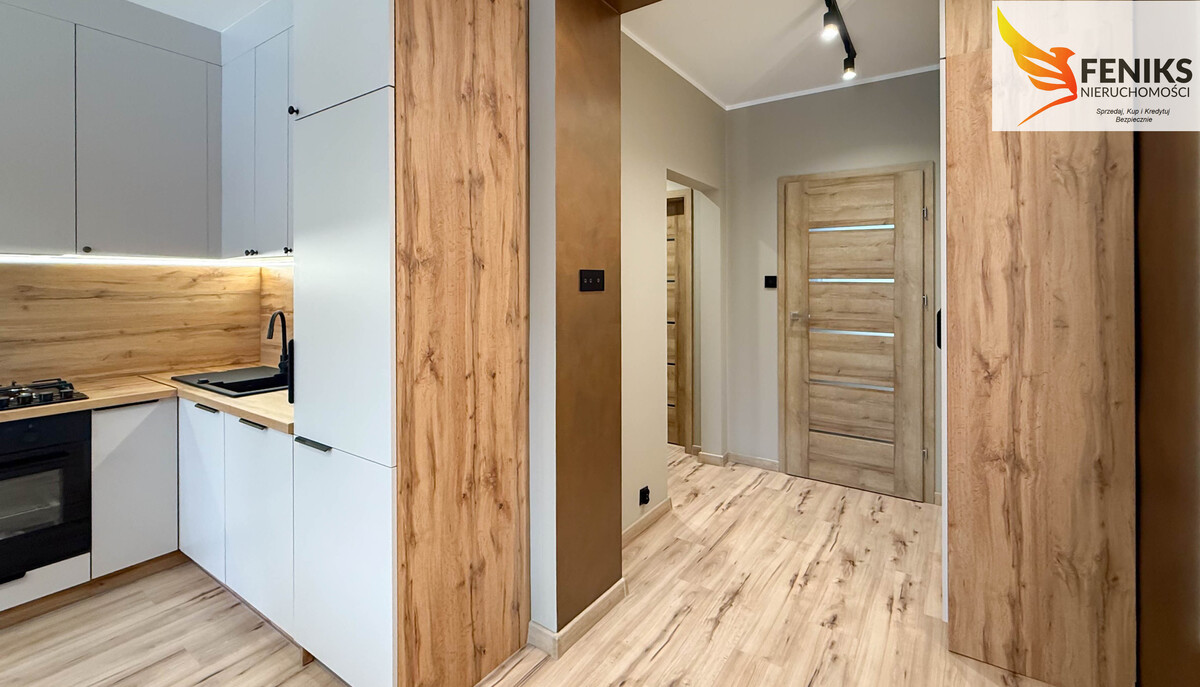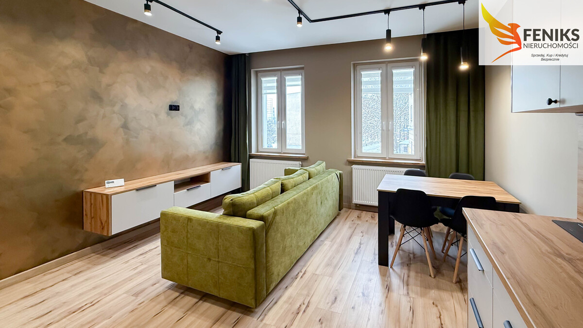 Mieszkanie o powierzchni 38 m², położone na pierwszym piętrze kamienicy jest nowoczesne, i w pełni wykończone. Lokal przeszedł generalny remont i sprzedawany jest z kompletnym umeblowaniem oraz wyposażeniem AGD, dzięki czemu jest gotowy do zamieszkania bez konieczności ponoszenia dodatkowych kosztów. Do mieszkania przynależy piwnica o powierzchni 5 m², a dodatkowym atutem jest schowek znajdujący się na klatce schodowej, który ma ok 1 m2. Wnętrze zostało zaprojektowane z myślą o funkcjonalności i komforcie. Mieszkanie składa się z przestronnego salonu z aneksem kuchennym, oddzielnej sypialni, dużej nowoczesnej łazienki oraz holu z zabudową. Strefa dzienna obejmuje kuchnię wykonaną na wymiar, wyposażoną w pełne AGD, w tym lodówkę, zmywarkę, kuchenkę gazową z piekarnikiem elektrycznym oraz okap. Część wypoczynkową tworzy wygodna sofa z funkcją spania oraz nowoczesna, wisząca szafka RTV. Całość dopełnia nowoczesne oświetlenie sufitowe oraz dekoracyjne oświetlenie LED, które podkreśla charakter wnętrza. Sypialnia stanowi przytulną i komfortową przestrzeń do odpoczynku, wyposażoną w łóżko wykonane na wymiar, dekoracyjną ścianę oraz nowoczesne oświetlenie. Łazienka została wykończona w wysokim standardzie i oferuje prysznic typu walk-in z niskim brodzikiem, blat z dwiema umywalkami nablatowymi, pralkę w zabudowie, lustro z podświetleniem LED, wiszący grzejnik oraz toaletę. Hol zapewnia dużą ilość miejsca do przechowywania dzięki szafom w zabudowie wykonanym na wymiar, w tym pojemnej zabudowie pod sufit. Mieszkanie przeszło kompleksowy remont obejmujący wymianę instalacji elektrycznej i hydraulicznej, wykonanie nowych podłóg, gładzi oraz wykończeń malarskich, a także montaż nowego pieca gazowego i grzejników. Zastosowano niezależne, ekonomiczne ogrzewanie gazowe.
