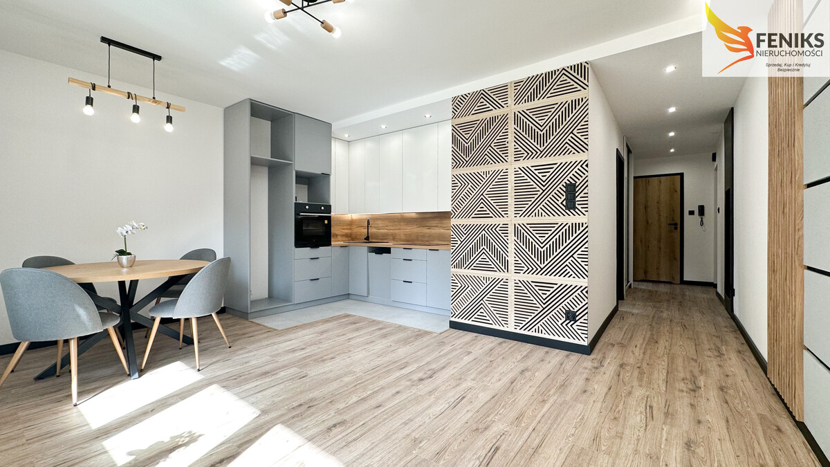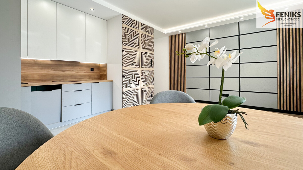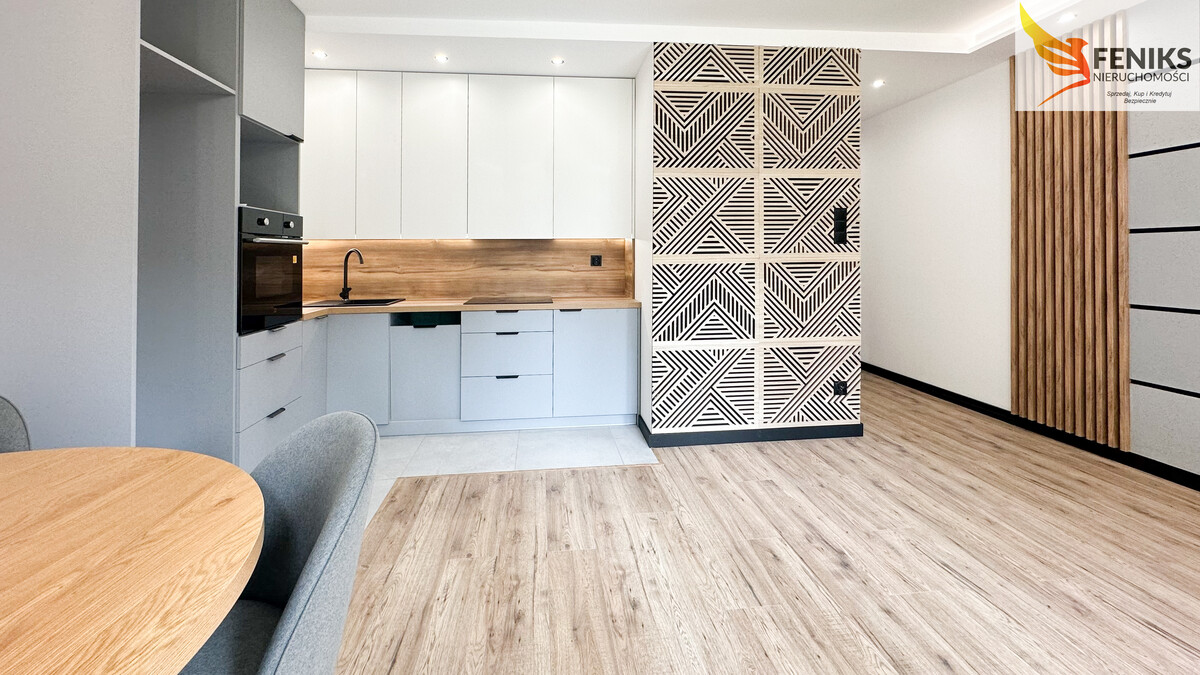 Na lokal o powierzchni 52.6 m2 składa się przestronny salon z aneksem kuchennym, 2 pokoje, łazienka oraz przedpokój. Mieszkanie jest bardzo pięknie wykończone, na ścianach w salonie oraz sypialni znajdują się ozdobne drewniane panele. Oświetlenie zostało nowocześnie zaprojektowane (czujniki ruchu na przedpokoju). Aneks kuchenny wykonany zgodnie z aktualnymi trendami wyposażony w piekarnik oraz płytę indukcyjną. Przygotowane zostało miejsce pod zmywarkę, lodówkę w zabudowie oraz mikrofalówkę lub kawiarkę. Łazienka została wyposażona w prysznic typu walk in, umywalkę z podwieszaną szafką, przygotowane zostało także miejsce pod pełnowymiarową pralkę. Na przedpokoju oraz w sypialni wykonane zostały szafy pod wymiar w zabudowie. Mieszkanie jest po kapitalnym remoncie, wymienione instalacje elektryczna, hydrauliczna, grzewcza, nowe drzwi wewnętrzne i wejściowe. Wystawa okien od wschodu i południa. Lokal jest słoneczny i cichy (okna nie wychodzą na główną ulicę). Wszystkie media z miasta, duża piwnica - 10,6 m2,niski czynsz - 620 zł.