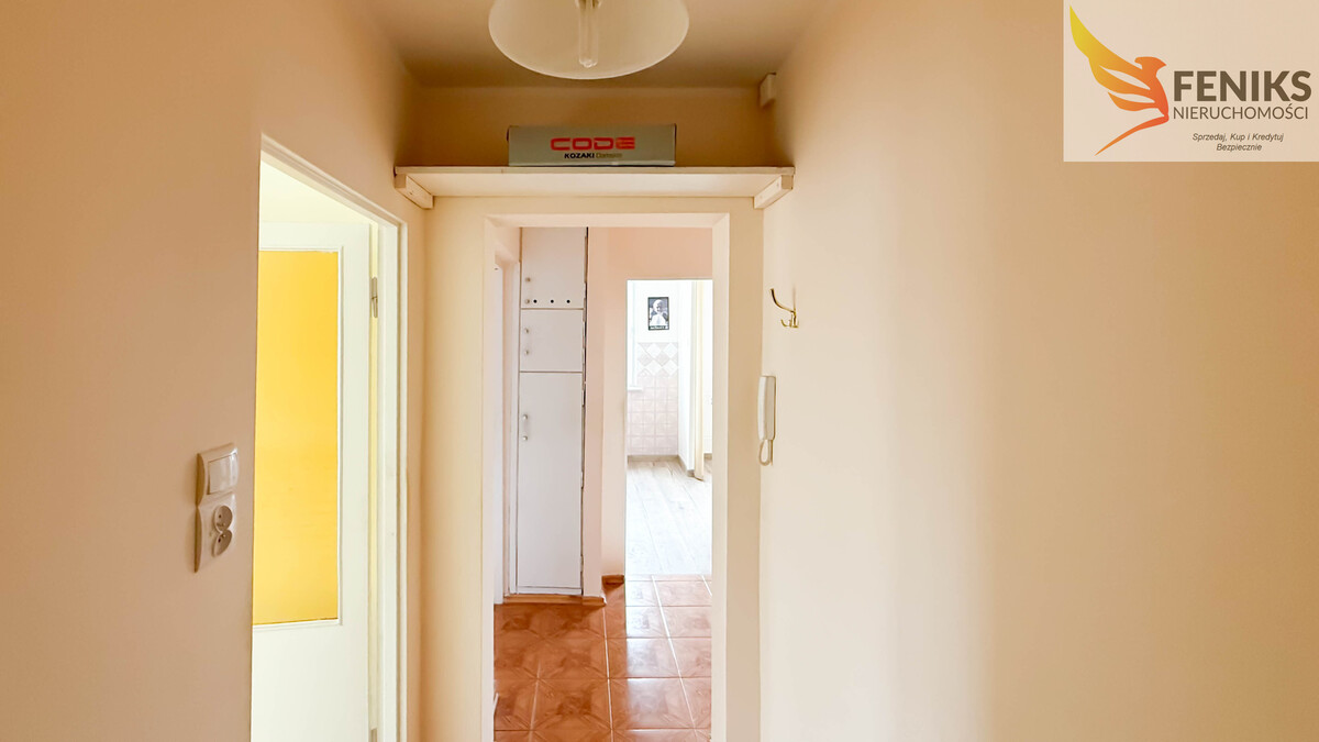 Nieruchomość o powierzchni 48 m² położona jest na 2 piętrze w kameralnym budynku. Lokal składa się z trzech niezależnych pokoi, co daje duże możliwości aranżacyjne – zarówno dla rodziny, jak i pod wynajem. Z największego pokoju prowadzi wyjście na balkon, który stanowi dodatkową przestrzeń do relaksu. Kuchnia ma funkcjonalny układ – jest częściowo otwarta na jeden z pokoi. Łazienka zadbana, wyposażona w prysznic oraz WC, z wydzielonym miejscem na pralkę. Zarówno kuchnia, jak i łazienka są w dobrym stanie – mieszkanie wymaga głównie odświeżenia lub drobnego remontu pokoi według własnego gustu. Ekspozycja okien na stronę północno-wschodnią zapewnia przyjemne, naturalne światło bez nadmiernego nagrzewania latem. Wszystkie media pochodzą z sieci miejskiej. Czynsz administracyjny wynosi około 700 zł miesięcznie. Do mieszkania przynależy również piwnica. Dodatkowym atutem jest parking dla mieszkańców zabezpieczony szlabanem, co zapewnia komfort i większe bezpieczeństwo parkowania.