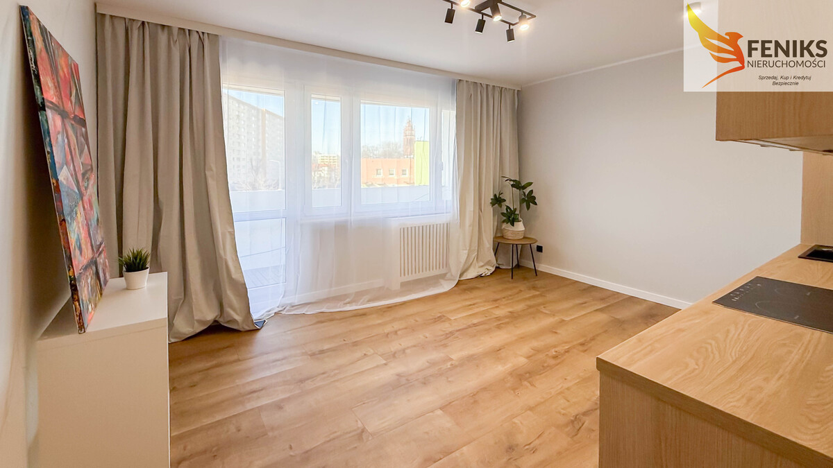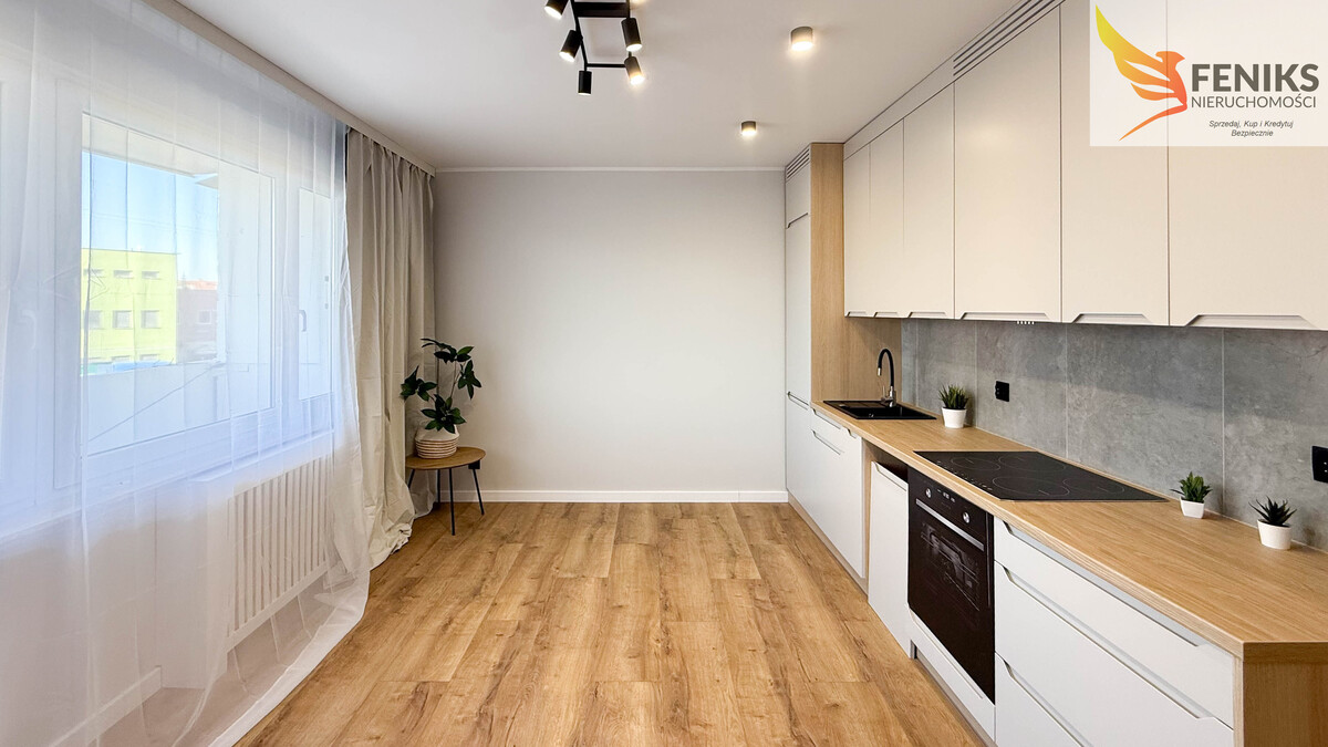 Mieszkanie o powierzchni 59,5 m², położone jest na 1 piętrze wieżowca z windą. Lokal składa się z salonu z aneksem kuchennym, 3 niezależnych pokoi, oddzielnego WC, łazienki z prysznicem oraz podwójnego przedpokoju (mniejszy przejściowy i większy). Salon oferuje wyjście na dużą loggię. Mieszkanie przeszło generalny remont - wszystko jest nowe, wykończone w jasnych, uniwersalnych kolorach, gotowe do wprowadzenia – idealne do umeblowania i doposażenia według własnych potrzeb. Czynsz wynosi 750 zł na jedną osobę, wszystkie media pochodzą z sieci miejskiej. Aneks kuchenny wyposażony w meble na wymiar bez sprzętu agd. Mieszkanie idealnie dla rodziny, pary lub jako inwestycja pod wynajem.