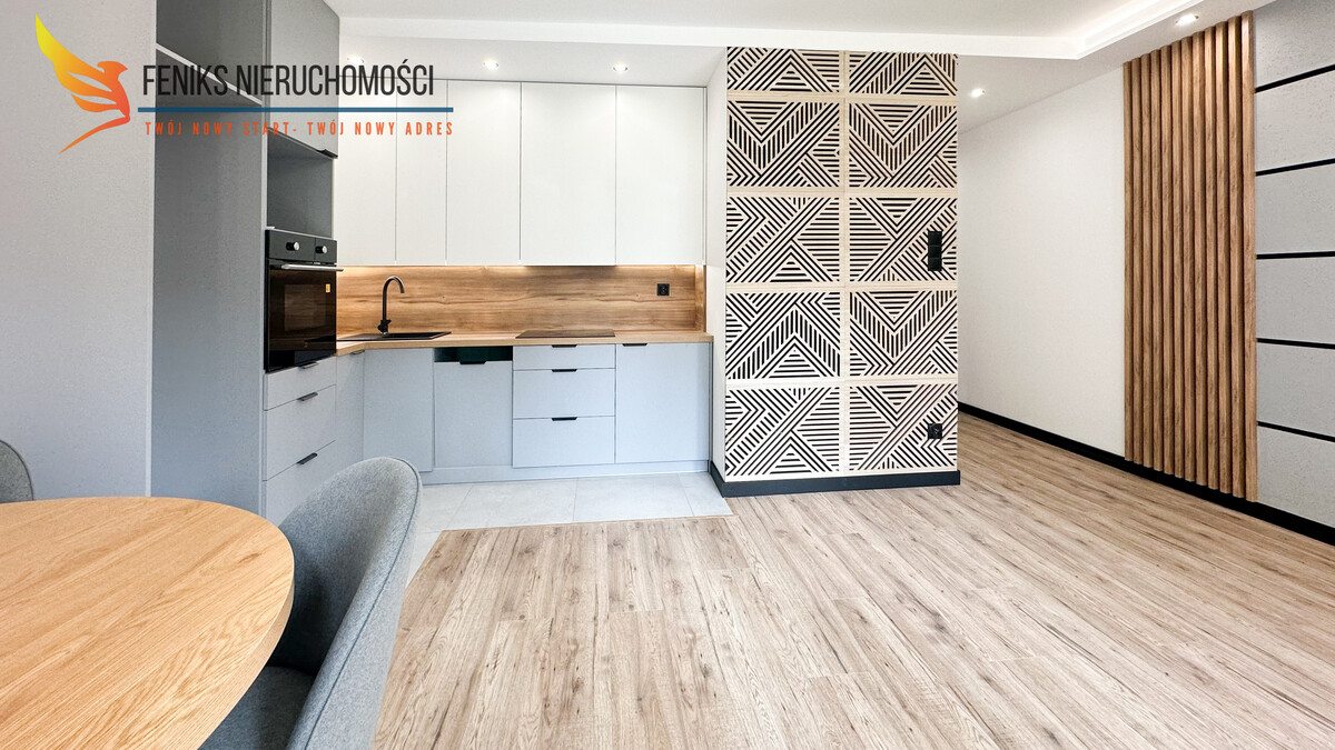 Na lokal o powierzchni 52.6 m2 składa się przestronny salon z aneksem kuchennym, 2 pokoje, łazienka oraz przedpokój. Mieszkanie jest bardzo pięknie wykończone, na ścianach w salonie oraz sypialni znajdują się ozdobne drewniane panele. Oświetlenie zostało nowocześnie zaprojektowane (czujniki ruchu na przedpokoju). Aneks kuchenny wykonany zgodnie z aktualnymi trendami wyposażony w piekarnik oraz płytę indukcyjną. Przygotowane zostało miejsce pod zmywarkę, lodówkę w zabudowie oraz mikrofalówkę lub kawiarkę. Łazienka została wyposażona w prysznic typu walk in, umywalkę z podwieszaną szafką, przygotowane zostało także miejsce pod pełnowymiarową pralkę. Na przedpokoju oraz w sypialni wykonane zostały szafy pod wymiar w zabudowie. Mieszkanie jest po kapitalnym remoncie, wymienione instalacje elektryczna, hydrauliczna, grzewcza, nowe drzwi wewnętrzne i wejściowe. Wystawa okien od wschodu i południa. Lokal jest słoneczny i cichy (okna nie wychodzą na główną ulicę). Wszystkie media z miasta, duża piwnica - 10,6 m2,niski czynsz - 620 zł.
