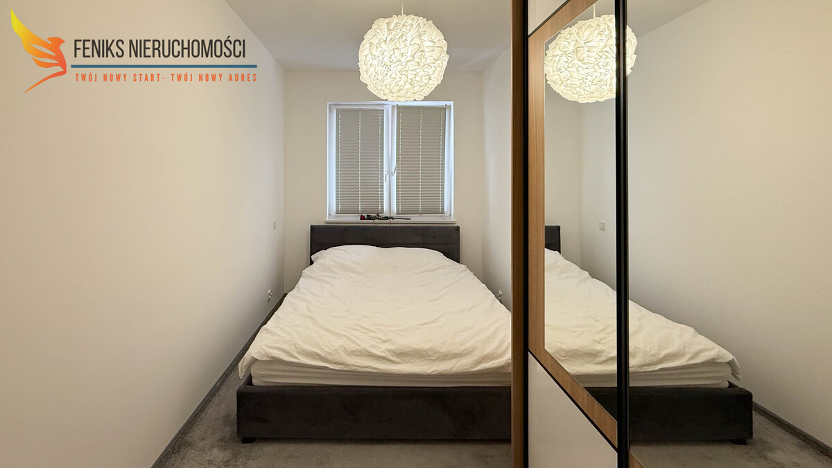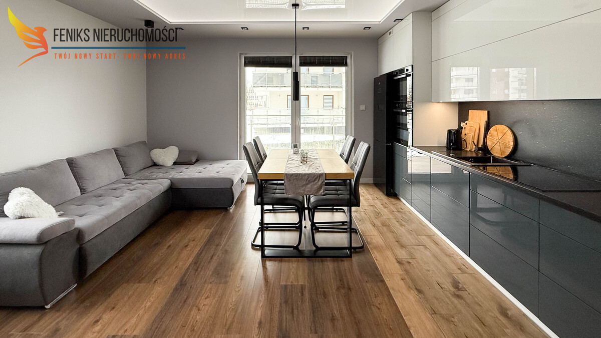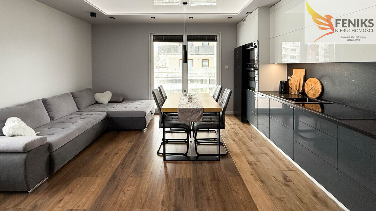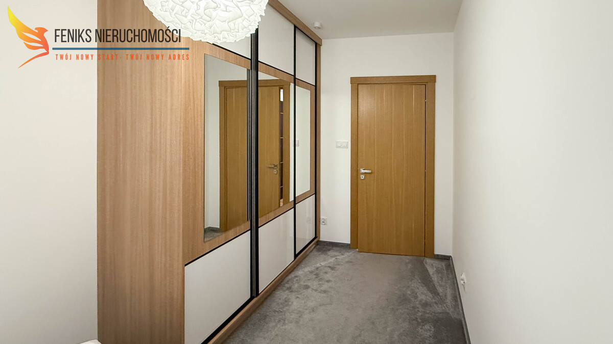 Lokal położony jest na parterze budynku z 2018 roku. Powierzchnia mieszkania wynosi 53 m² i składa się z przestronnego salonu z aneksem kuchennym, dwóch oddzielnych pokoi, łazienki oraz funkcjonalnego przedpokoju. Z salonu prowadzi wyjście na duży, narożny balkon. W części dziennej zastosowano nowoczesne oświetlenie sufitowe z możliwością zmiany kolorów oraz klimatyczne oświetlenie nad szafkami kuchennymi. Komfort użytkowania podnosi ogrzewanie podłogowe, a wnętrzu elegancji dodają solidne drewniane drzwi z chowanymi zawiasami, podkreślające wysoką jakość wykończenia. Jedna z sypialni jest w pełni umeblowana – znajduje się w niej łóżko sypialniane oraz pojemna szafa z lustrzanymi frontami. W przedpokoju zabudowano dużą, funkcjonalną szafę, a zastosowane lustra optycznie powiększają przestrzeń i nadają jej lekkości. Łazienka wyposażona jest w wannę z częściowym przeszkleniem, co umożliwia korzystanie zarówno z kąpieli, jak i z prysznica – praktyczne rozwiązanie „ 2 w 1” . Mieszkanie jest gustownie i nowocześnie wykończone, gotowe do wprowadzenia. W cenie pozostają wszystkie meble oraz sprzęty AGD: lodówka, piekarnik, płyta/kuchenka oraz zmywarka. Czynsz przy 1 osobie wynosi ok.687 zł/mies.