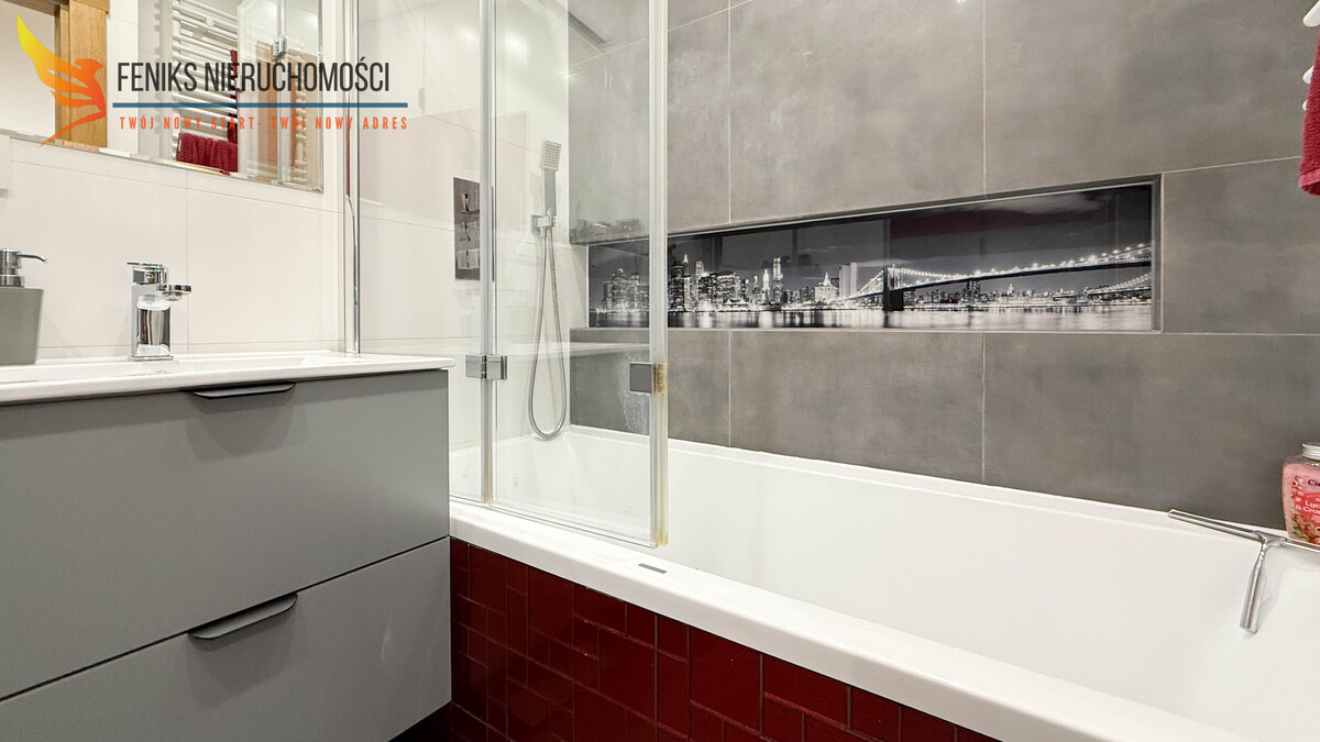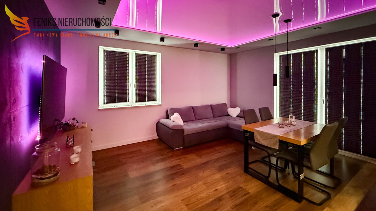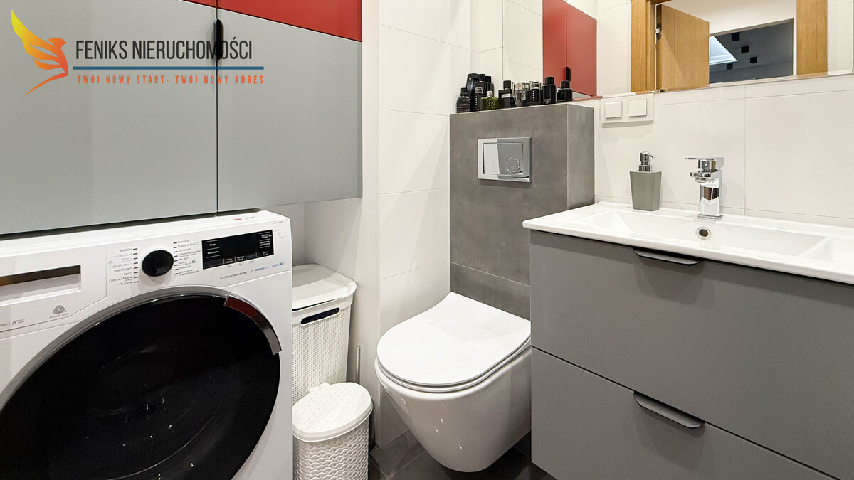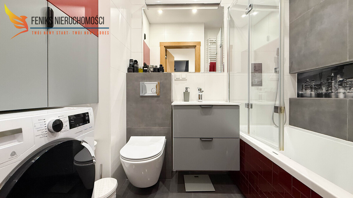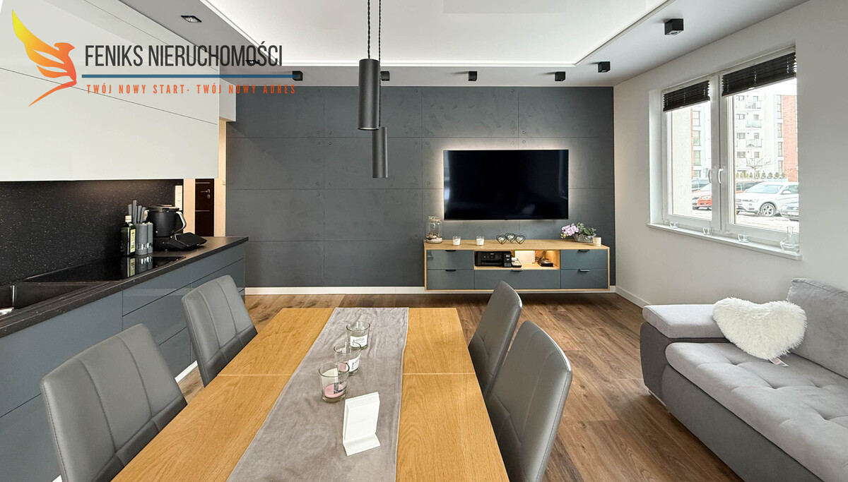 Lokal położony jest na parterze budynku z 2018 roku. Powierzchnia mieszkania wynosi 53 m² i składa się z przestronnego salonu z aneksem kuchennym, dwóch oddzielnych pokoi, łazienki oraz funkcjonalnego przedpokoju. Z salonu prowadzi wyjście na duży, narożny balkon. W części dziennej zastosowano nowoczesne oświetlenie sufitowe z możliwością zmiany kolorów oraz klimatyczne oświetlenie nad szafkami kuchennymi. Komfort użytkowania podnosi ogrzewanie podłogowe, a wnętrzu elegancji dodają solidne drewniane drzwi z chowanymi zawiasami, podkreślające wysoką jakość wykończenia. Jedna z sypialni jest w pełni umeblowana – znajduje się w niej łóżko sypialniane oraz pojemna szafa z lustrzanymi frontami. W przedpokoju zabudowano dużą, funkcjonalną szafę, a zastosowane lustra optycznie powiększają przestrzeń i nadają jej lekkości. Łazienka wyposażona jest w wannę z częściowym przeszkleniem, co umożliwia korzystanie zarówno z kąpieli, jak i z prysznica – praktyczne rozwiązanie „ 2 w 1” . Mieszkanie jest gustownie i nowocześnie wykończone, gotowe do wprowadzenia. W cenie pozostają wszystkie meble oraz sprzęty AGD: lodówka, piekarnik, płyta/kuchenka oraz zmywarka. Czynsz przy 1 osobie wynosi ok.687 zł/mies.