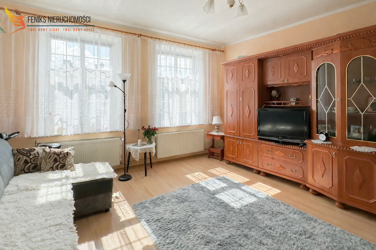Lokal składa się z 3 pokoi, oddzielnej kuchni, łazienki z wc oraz przedpokoju. Do mieszkania na II piętrze przynależy komórka lokatorska. Kamienica została podłączona do ogrzewania miejskiego, piec kaflowy mieszczący się w dużym pokoju pełni funkcję ozdobną. W mieszkaniu wszystkie okna są typu pcv, wymieniono drzwi wewnętrzne, na podłogach w pokojach i przedpokoju znajdują się panele a w kuchni i łazience kafle. Kuchnia wyposażona w sprzęt agd między innymi zmywarkę. Łazienka z wc posiada prysznic miejsce na pralkę oraz okno. Mieszkanie posiada trójstronną wystawę okien, jest ciepłe, gotowe do zamieszkania. Wyposażenie mieszkania do ustalenia z właścicielami.