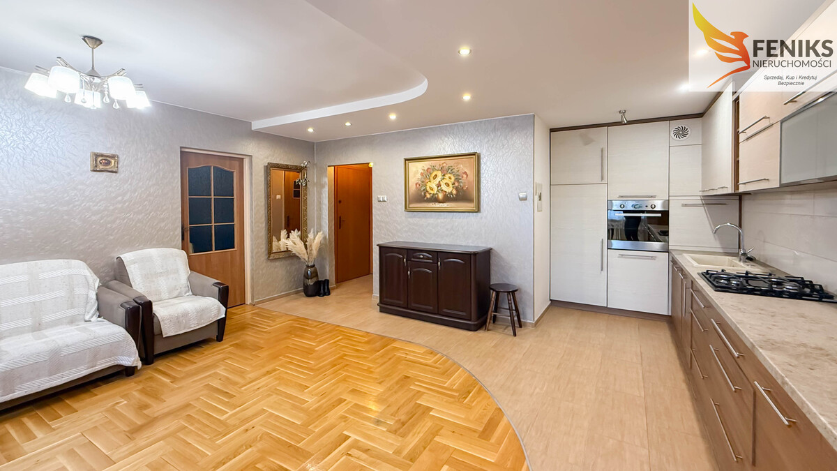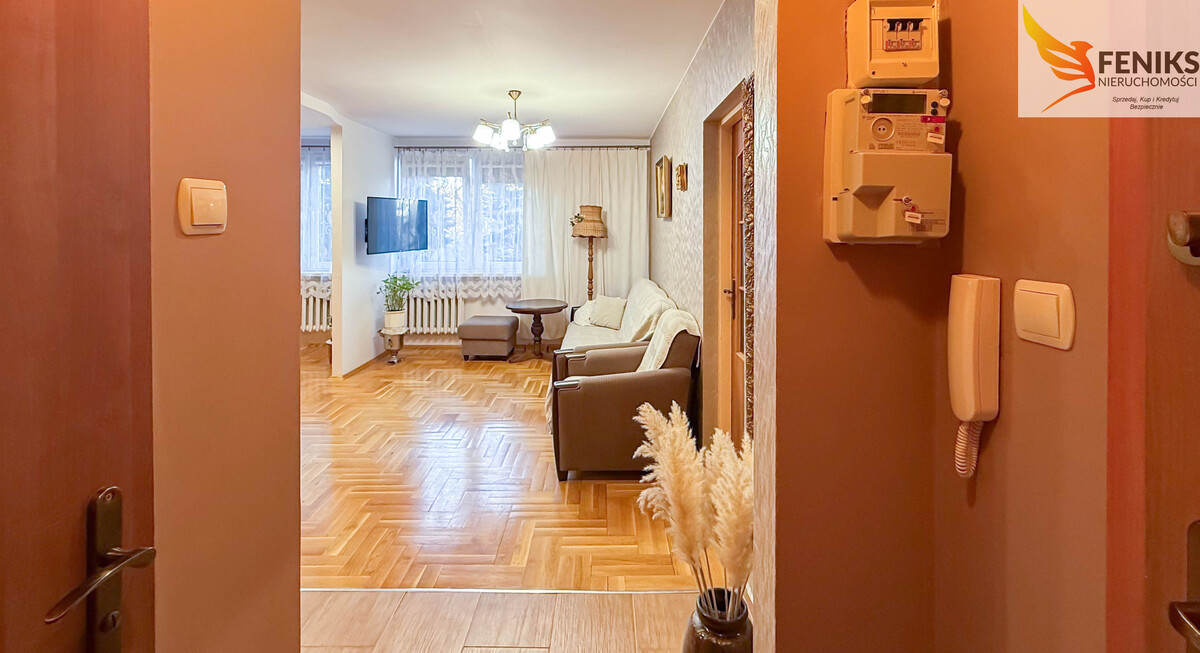 Mieszkanie o powierzchni 47 m² położone jest na parterze budynku zarządzanego przez Spółdzielnię Mieszkaniową Sielanka. Lokal pierwotnie posiadał trzy pokoje, jednak układ został zmieniony i obecnie mieszkanie składa się z przestronnego salonu z aneksem kuchennym, jednego mniejszego pokoju, przedpokoju oraz łazienki. Dzięki otwarciu przestrzeni część dzienna jest jasna i ustawna, co daje duże możliwości aranżacyjne. Mieszkanie jest funkcjonalne i daje możliwość wprowadzenia własnych zmian lub odświeżenia według potrzeb i gustu przyszłego właściciela. Do lokalu przynależy również piwnica, która zapewnia dodatkowe miejsce do przechowywania. Miesięczny czynsz administracyjny wynosi około 600 zł. Za budynkiem znajduje się parking przeznaczony dla mieszkańców, zabezpieczony szlabanem.