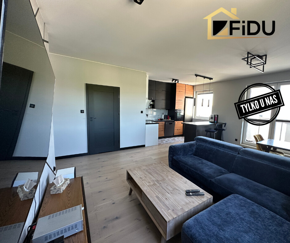 - Przestronny salon z aneksem kuchennym i wyjściem na duży balkon