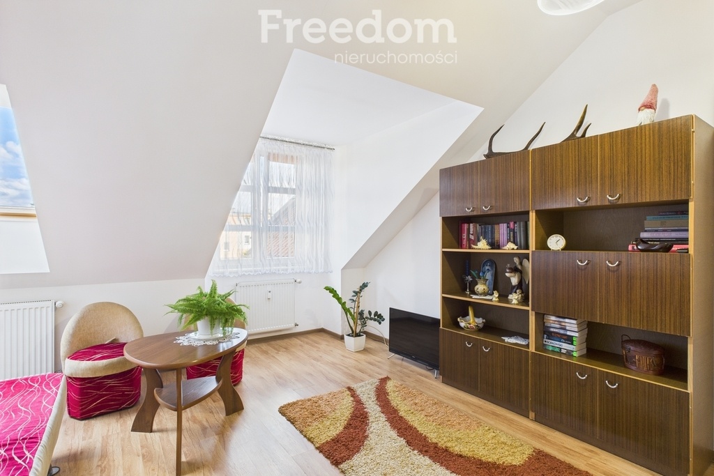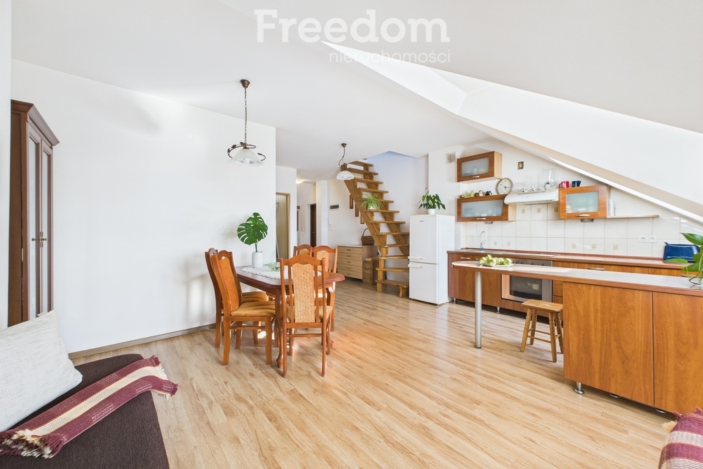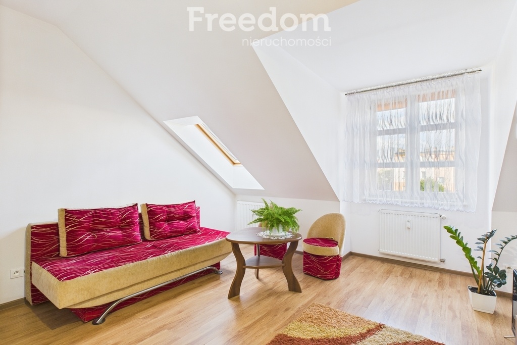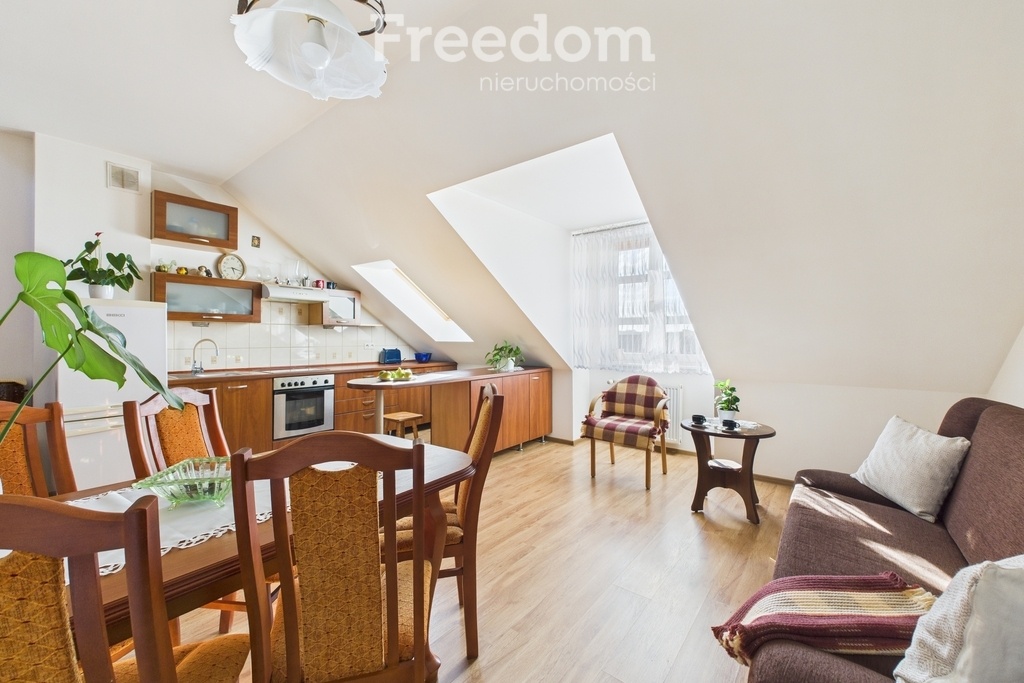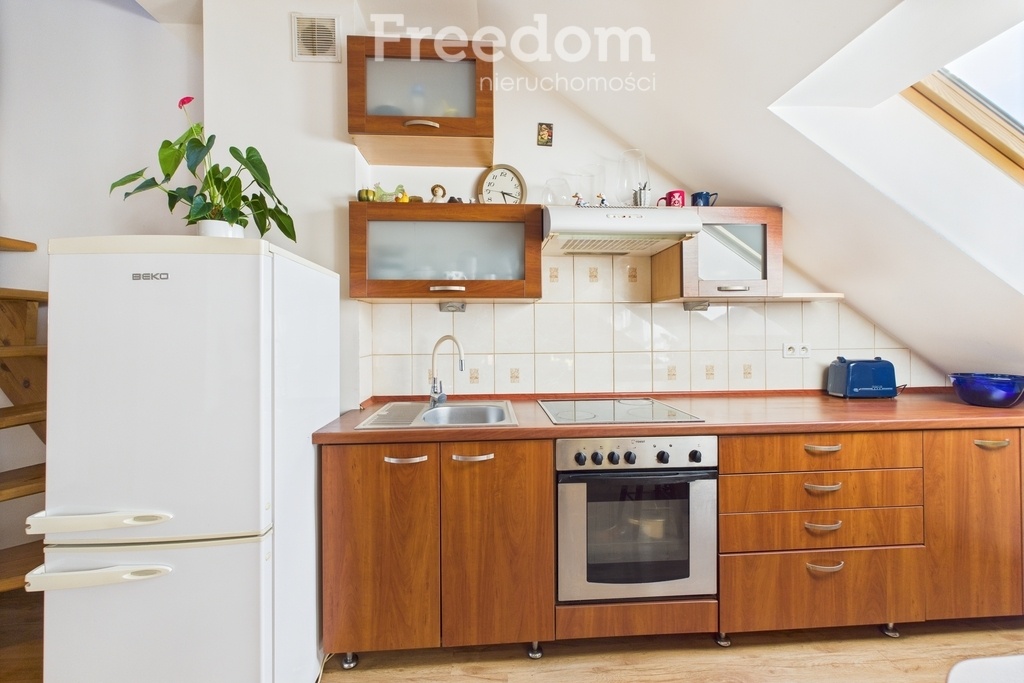 Mieszkanie obejmuje dwa pokoje, w tym salon z aneksem kuchennym + poddasze. Jest w bardzo dobrym stanie technicznym, zadbane, gotowe do wprowadzenia, bez konieczności ponoszenia dodatkowych nakładów.