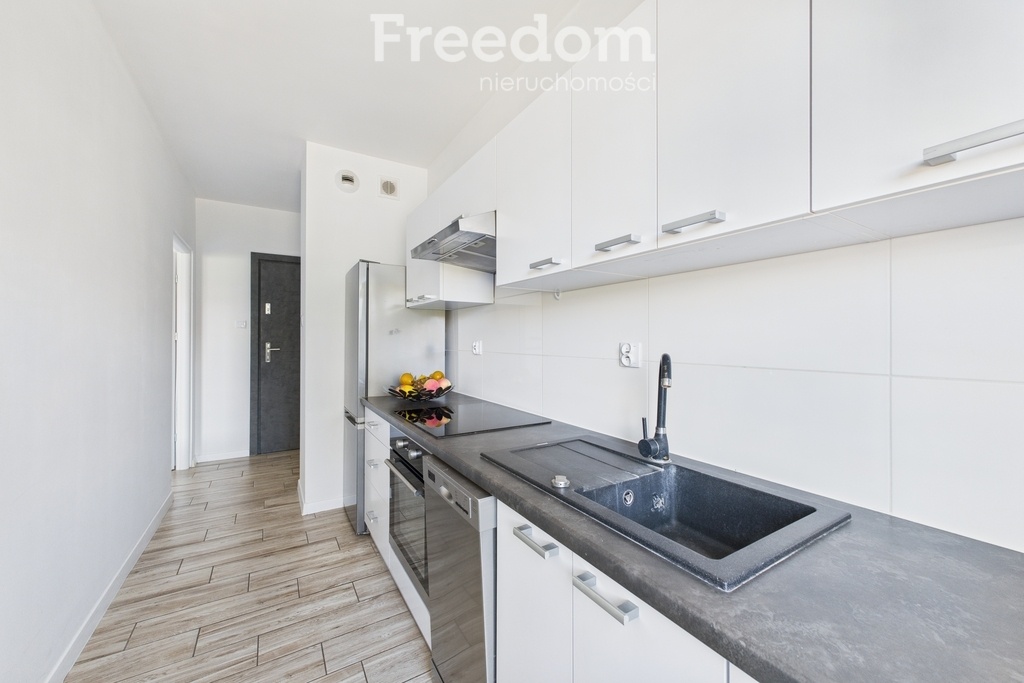 Mieszkanie jest nieumeblowane (oprócz zabudowy stałej oraz widocznych sprzętów AGD), co pozwala na dowolną aranżację i wykorzystanie dostępnej przestrzeni.