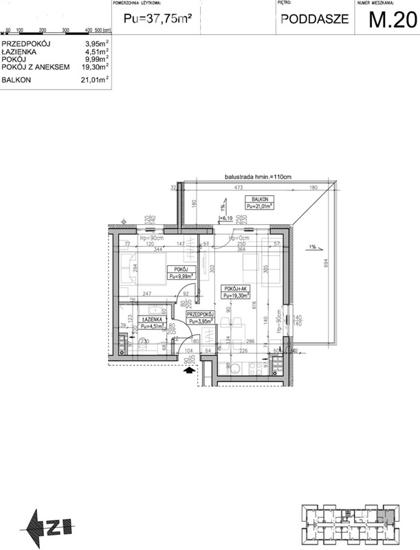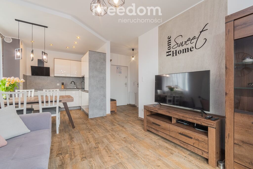The layout is very functional: a living room with a kitchenette, which opens onto a covered balcony of 21m² (southeast facing); a bedroom; and a bathroom. The unit includes an outdoor parking space for PLN 15,000 gross. It is sold fully furnished and equipped, ready for immediate occupancy.