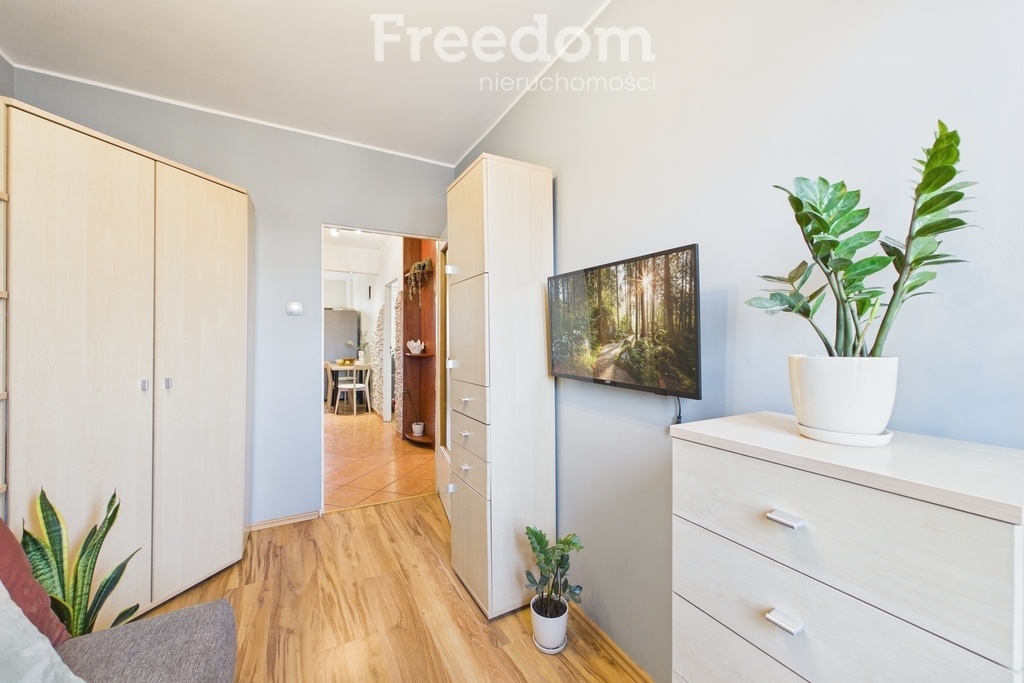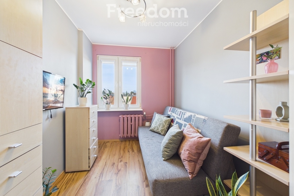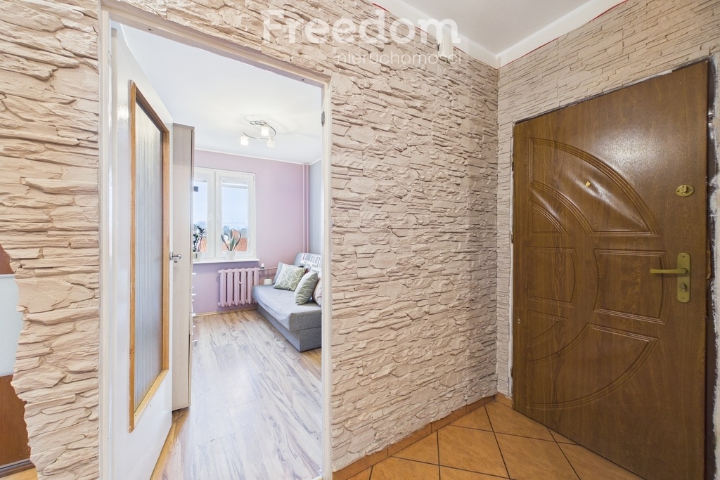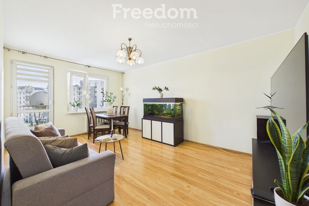Lokal składa się z trzech ustawnych pokoi, oddzielnej kuchni, łazienki i osobnego WC. Z salonu znajduje się wyjście na balkon od strony południowej, co zapewnia dobre nasłonecznienie. Ekspozycja mieszkania to południe – północ, dzięki czemu wnętrze jest jasne i dobrze doświetlone przez cały dzień.