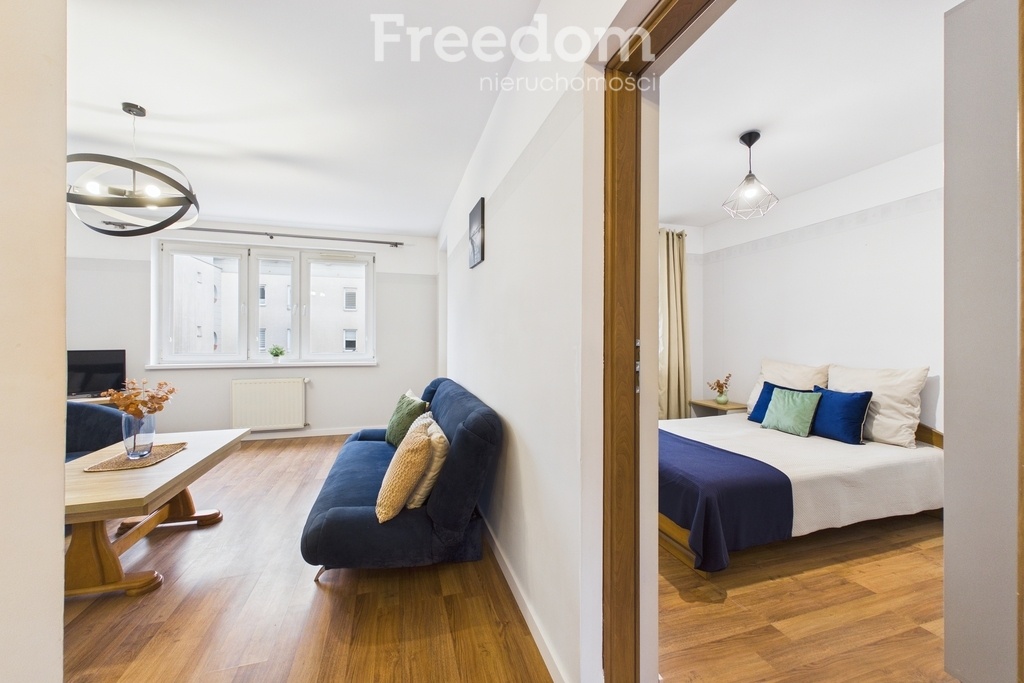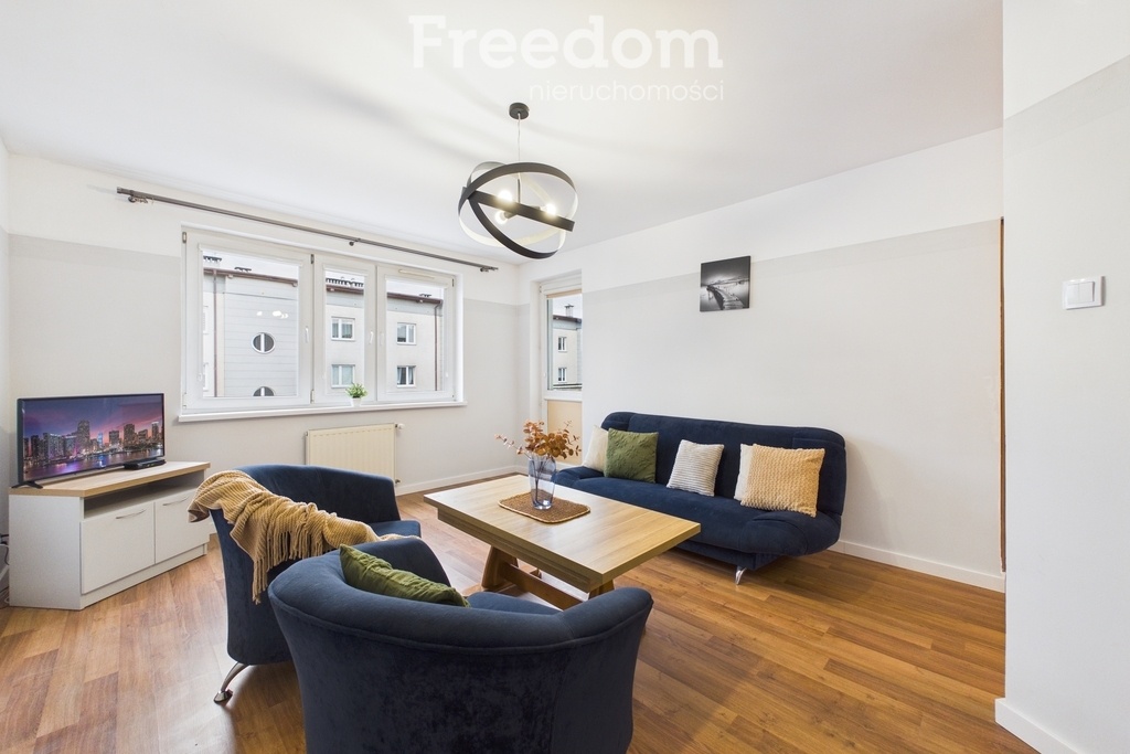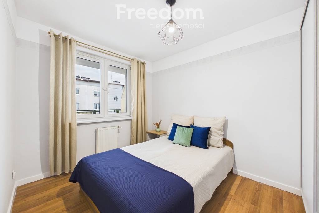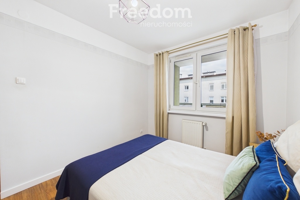 Mieszkanie składa się z dwóch niezależnych pokoi, oddzielnej, widnej kuchni z nowoczesną zabudową, łazienki oraz przedpokoju. Z jednego z pokoi wyjście na balkon. Lokal jest dwustronny, z ekspozycją na wschód i zachód, co zapewnia dobre doświetlenie przez cały dzień.