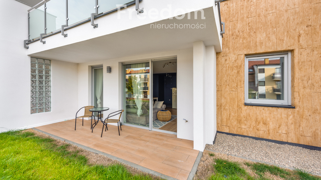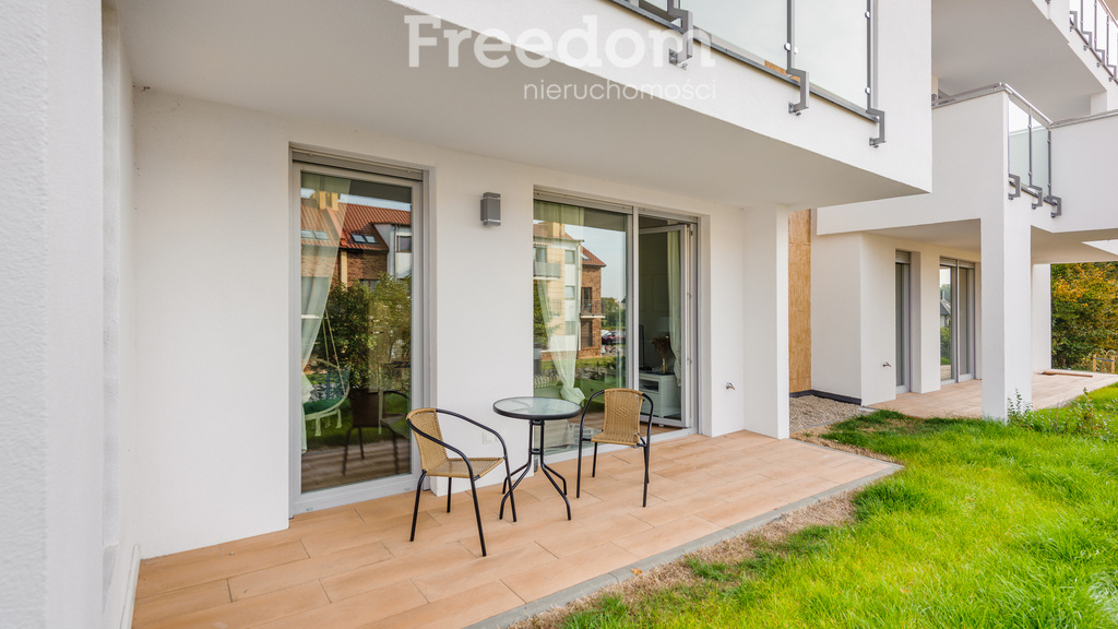 Mieszkanie zaprojektowane oraz urządzone przez profesjonalistów ma 40,17m2 i składa się z przestronnego salonu z aneksem kuchennym, sypialni z łóżkiem małżeńskim, łazienki z prysznicem i wc. Z pokoju dziennego dwa wyjścia na zadaszony taras oraz zielony ogródek o łącznej powierzchni 20m2. Istnieje możliwość wygospodarowania dodatkowego pokoju.
