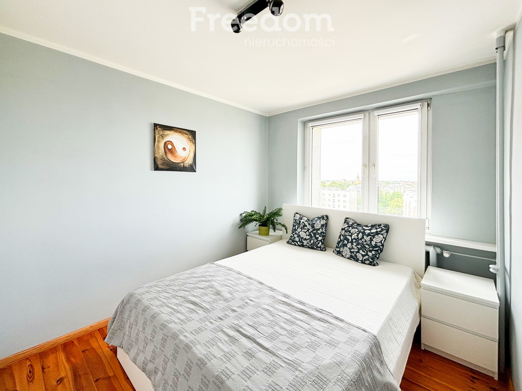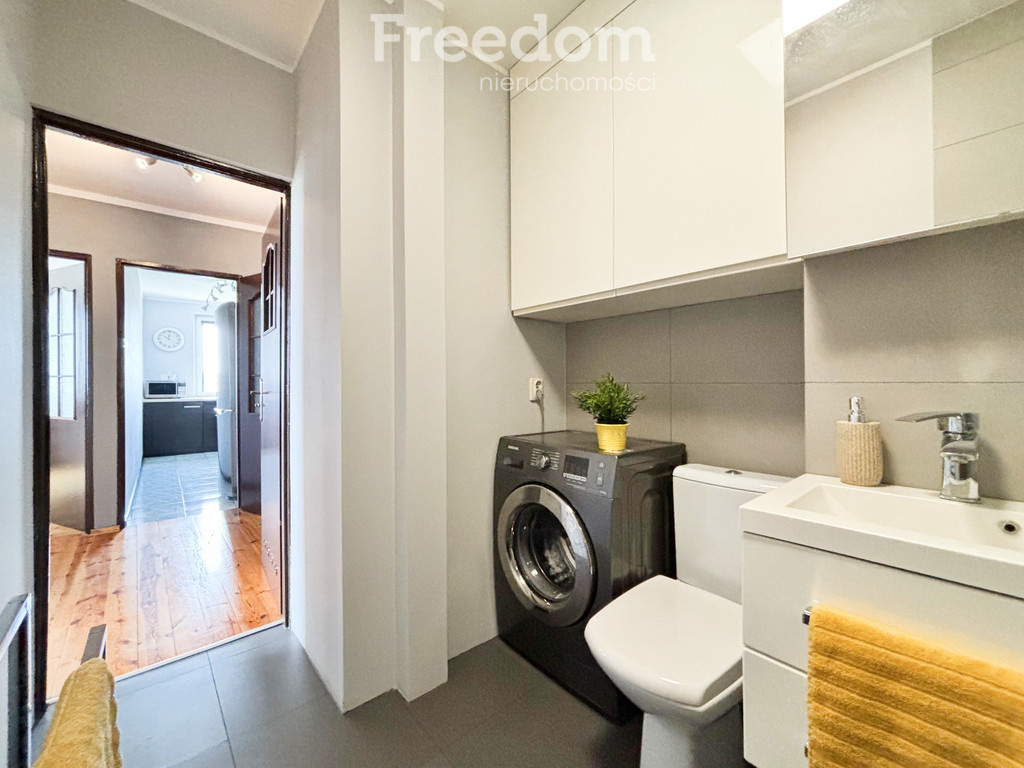 Południowa wystawa okienna sprawia, że mieszkanie jest doskonale nasłonecznione. W sypialni znajduje się duże łóżko i szafa w zabudowie. W łazience znajduje się kabina prysznicowa, umywalka i wc oraz pralka.